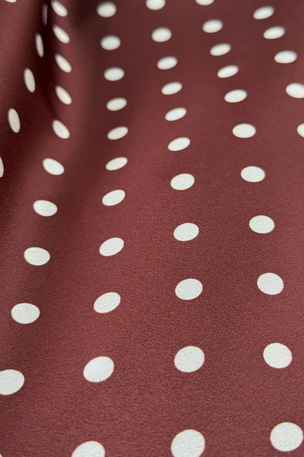 Lang nederdel fra A-bee i mørk bordeaux med hvide polkaprikker. Nederdelen har en afslappet pasform og går til anklerne.