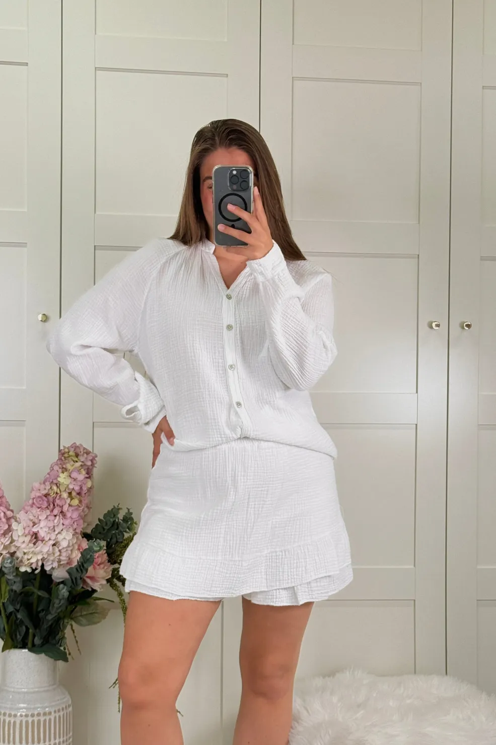 Hvide shorts fra A-bee i let bomuldsmateriale. De har en lige skæring og sidder løst på kroppen. Shortsene har en afslappet stil, der passer godt til varme sommerdage.
