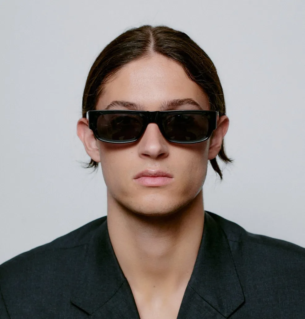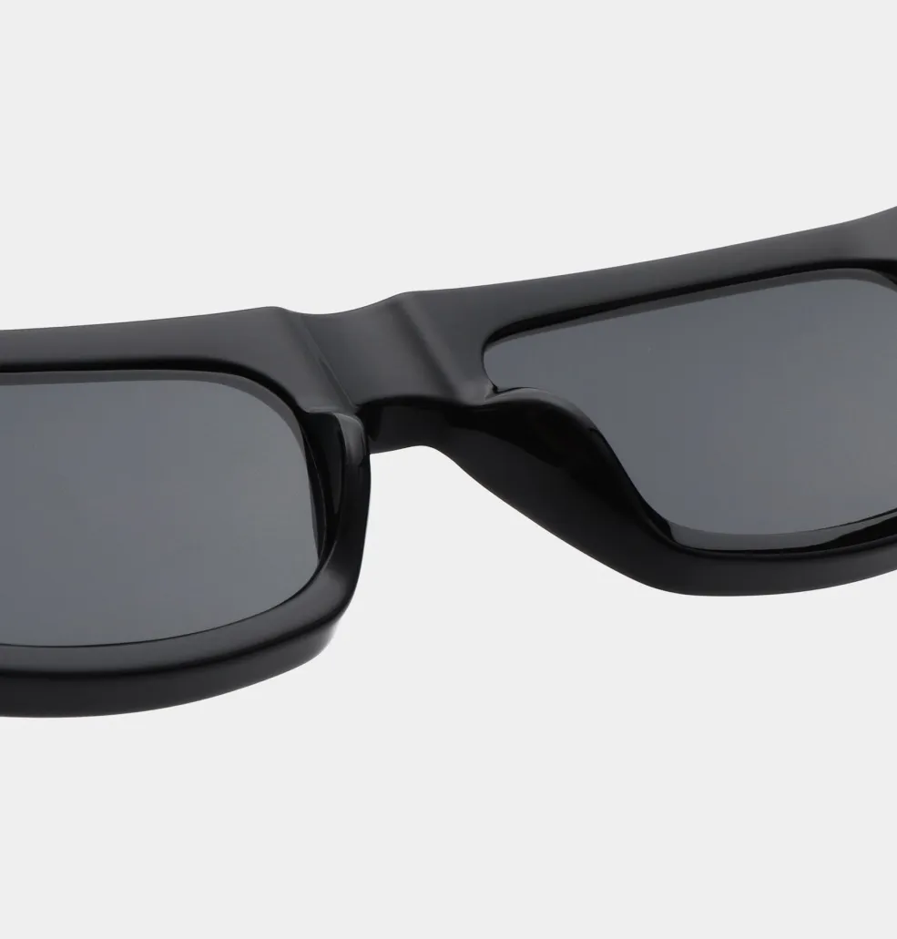 Sorte solbriller fra A. Kjærbede med rektangulær form. Brillerne har formbare stænger med metalkerne og er udstyret med UV 400-beskyttelse til dine øjne.