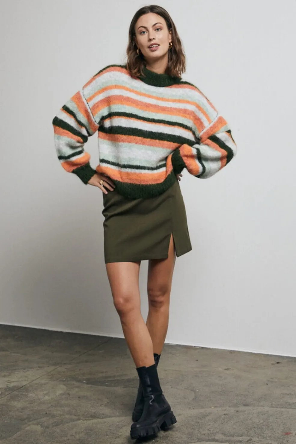 Armygrøn nederdel fra A-View med slank pasform. Den lårkorte model har en praktisk sideslids og lynlås i siden, der gør den nem at tage af og på.