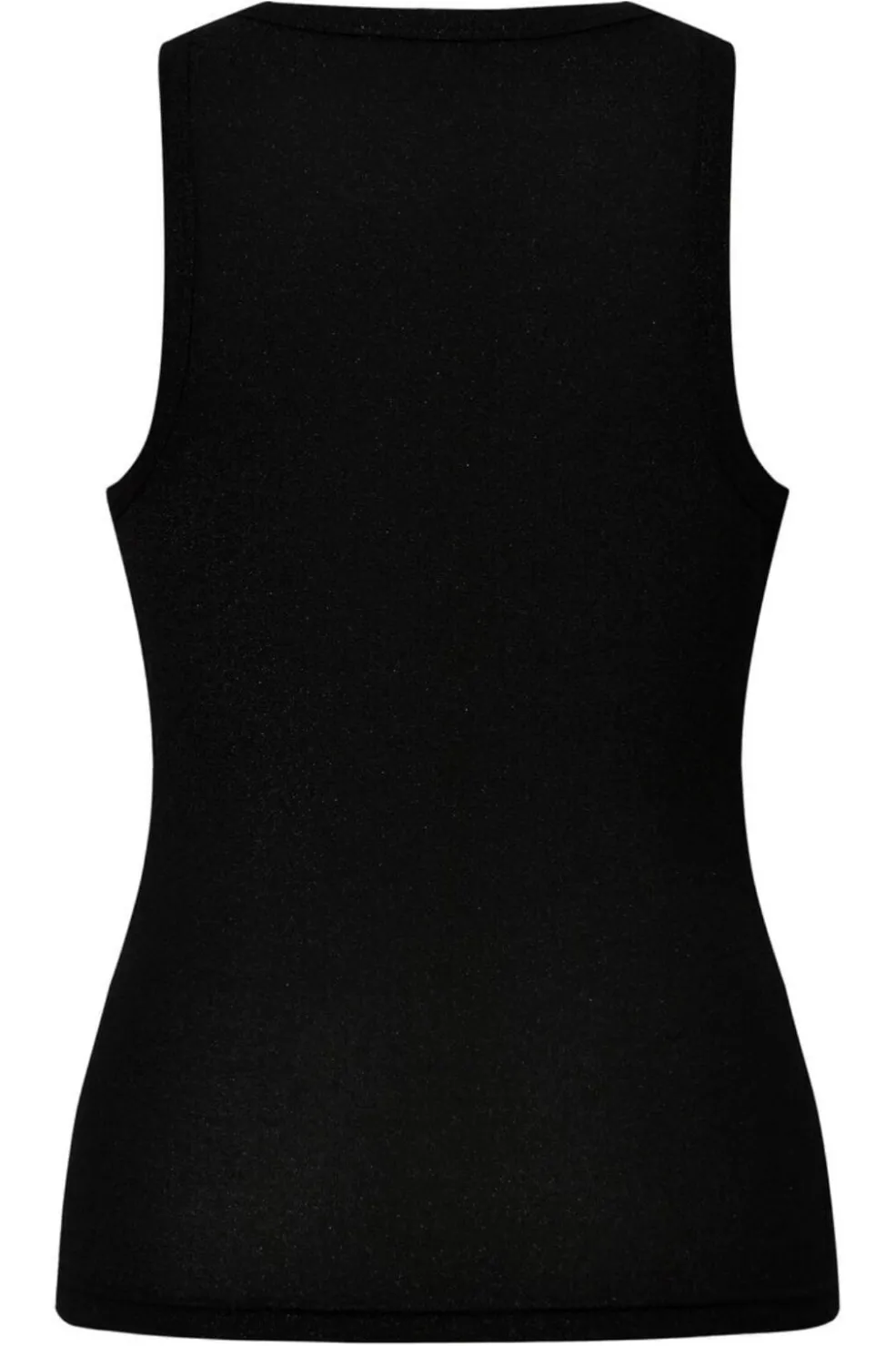 Sort tanktop med glimmer-effekt fra A-View. Den har rund halsudskæring, er ærmeløs og sidder tæt til kroppen.