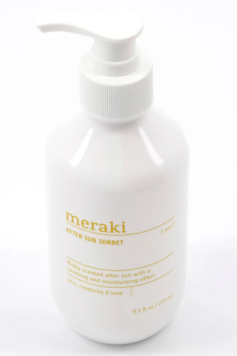 After sun sorbet med en mild duft af frisk mynte og hvid musk. Sorbetten indeholder naturlige ingredienser til pleje af soleksponeret hud.