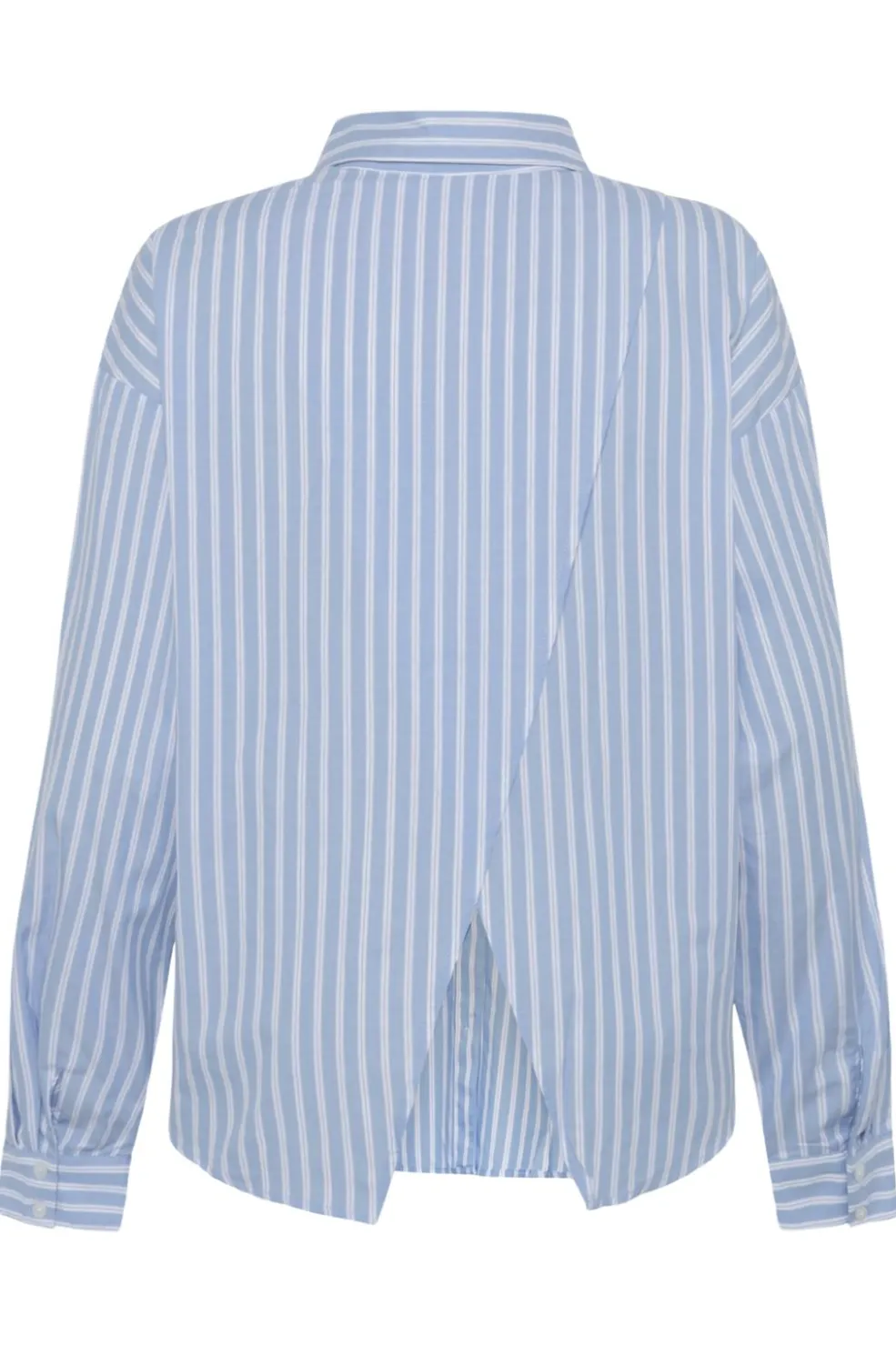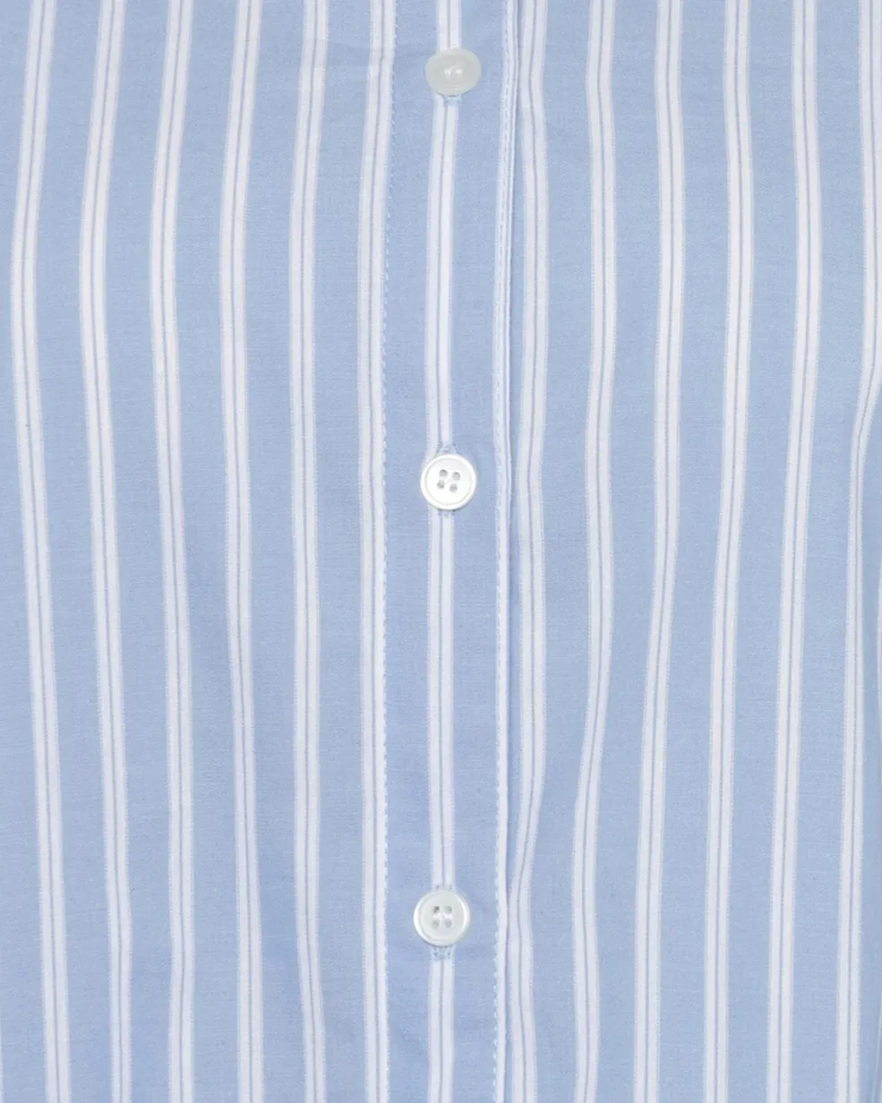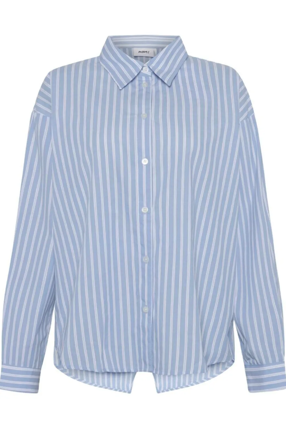 Lyseblå stribet skjorte fra Moves By Minimum med hvide striber. Skjorten har lange ærmer og en klassisk skjortekrave med knaplukning foran.