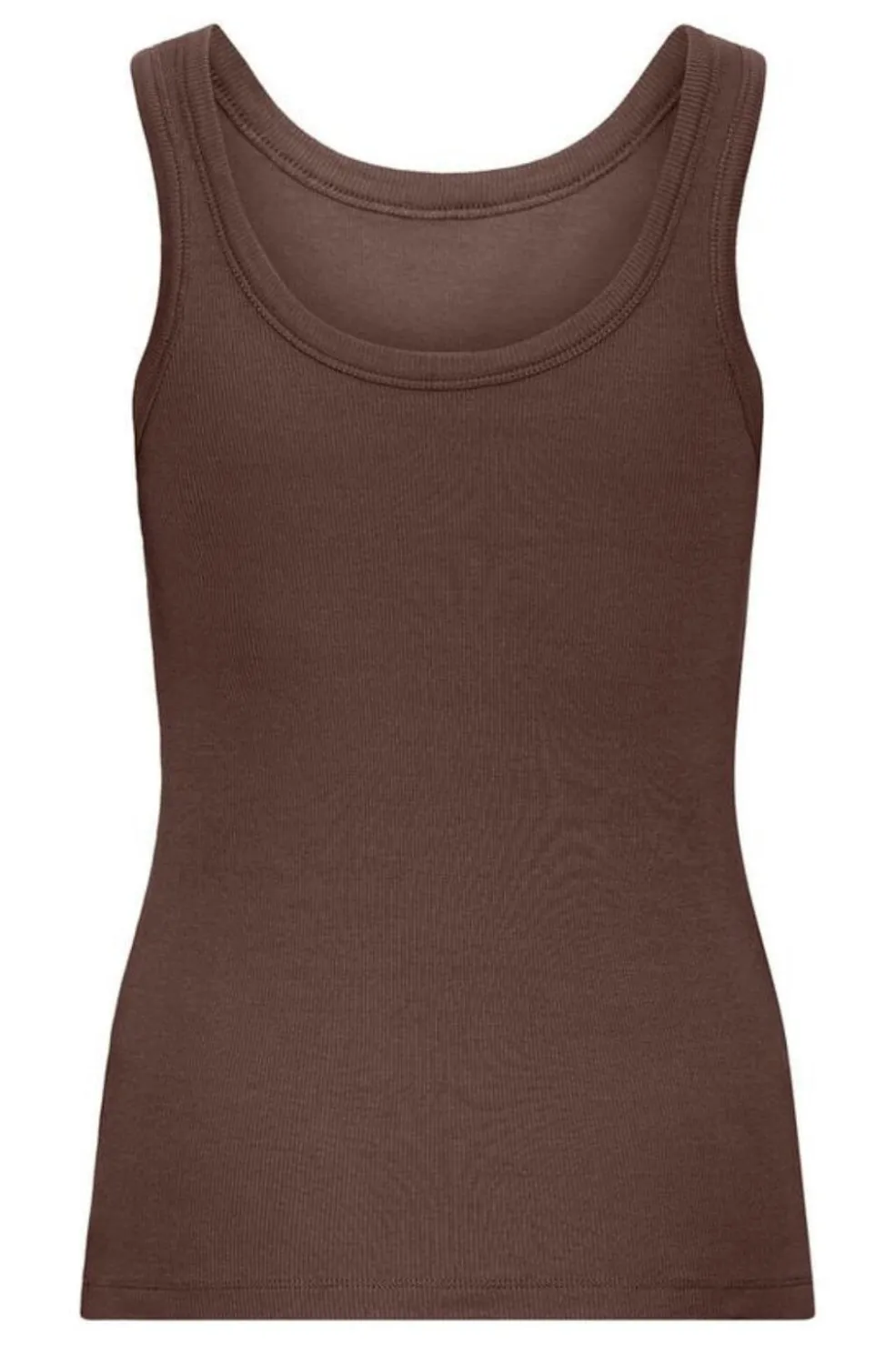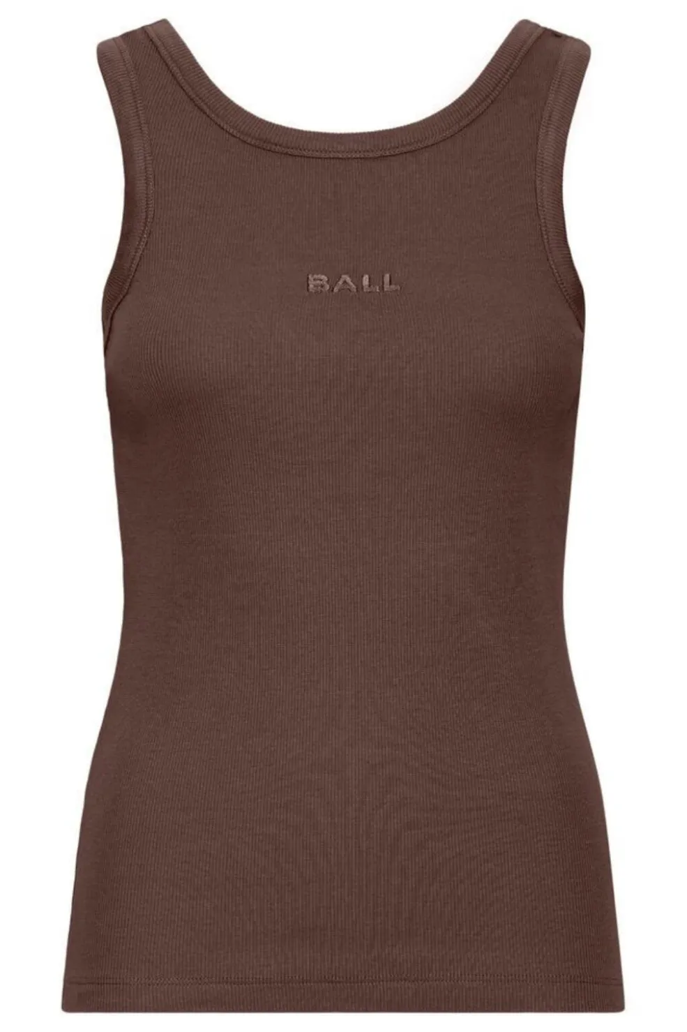 Brun tanktop fra Ball med broderet logo på forsiden. Tanktoppen er ærmeløs med brede stropper og rund halsudskæring.