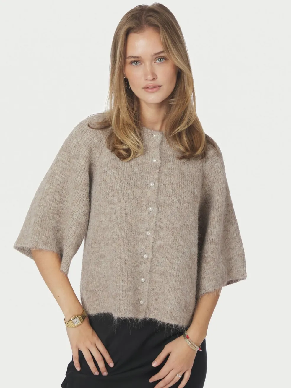 - Perlelignende knapper foran