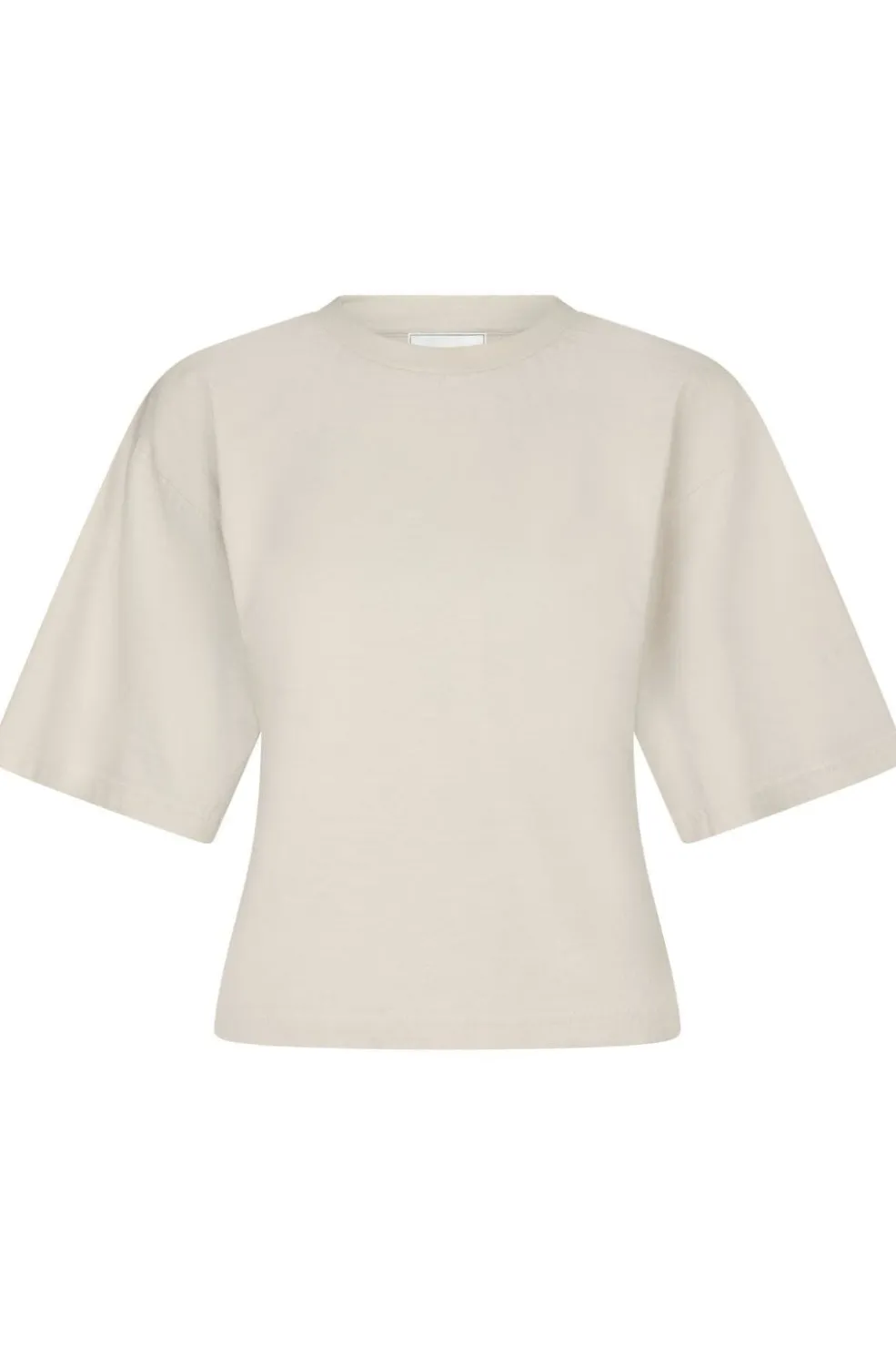T-shirt fra Neo Noir i en lys beige farve. Den har en boxy pasform ved skuldrene og korte ærmer med en rund halsudskæring.