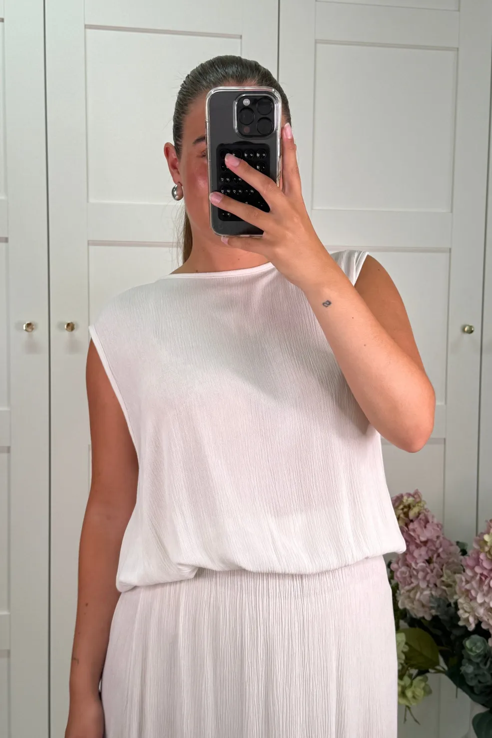 En ærmeløs top fra A-bee, lavet af viskose i en beige nuance. Toppen har en løs pasform og en rund halsudskæring.