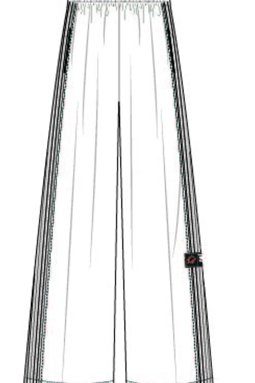 Track pants fra Haute L’Amitié i en dyb rød farve. Bukserne har en løs pasform og hvide striber langs siderne.