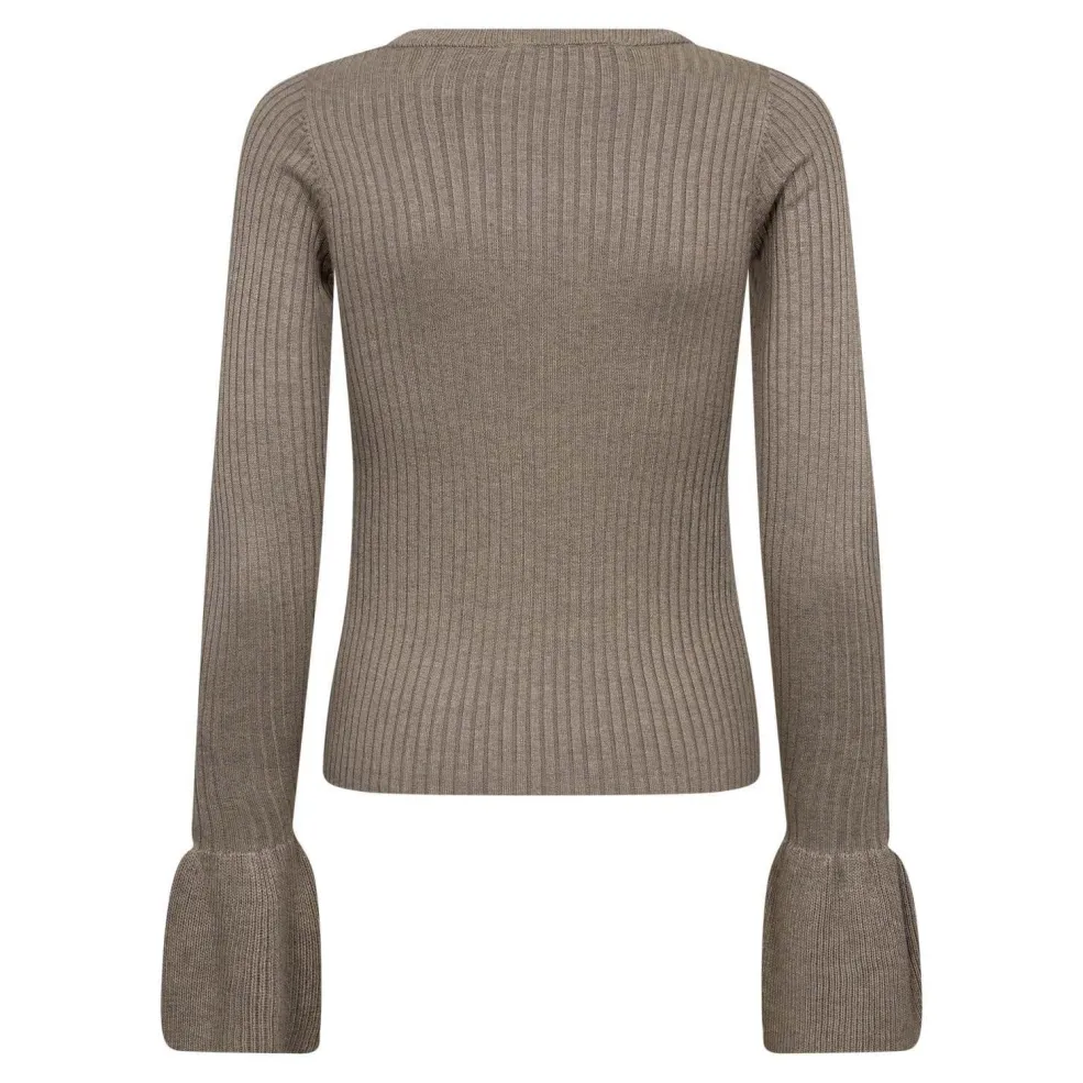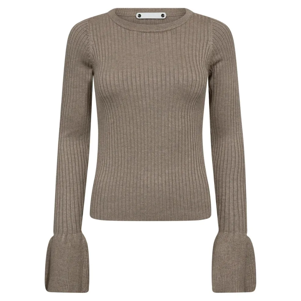 En striktrøje fra Co´Couture i en lys beige-brun nuance. Lavet af 80 % viscose og 20 % polyamid med et ribbet mønster over hele trøjen.