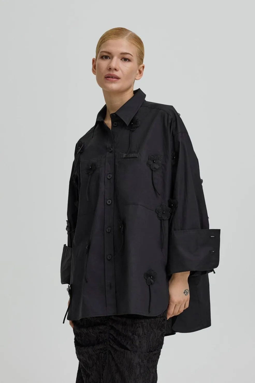 Sort skjorte fra Ball, lavet af 100 % bomuld. Skjorten har dekorative syninger og bindedetaljer, der giver den et kunstnerisk udtryk.