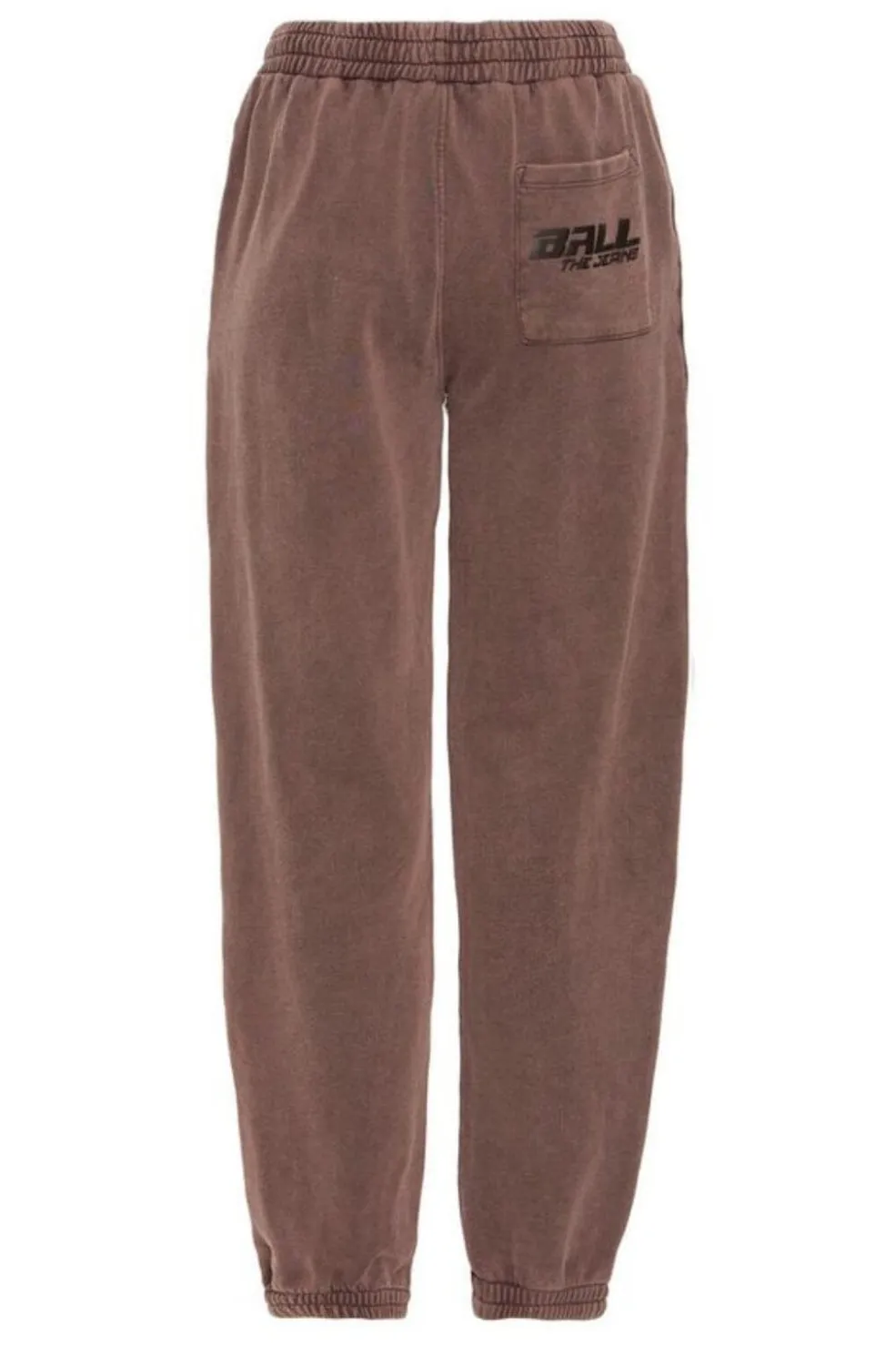 Brune sweatpants fra Ball, lavet af 100 % økologisk bomuld. Bukserne har en almindelig pasform og en ankel-længde.
