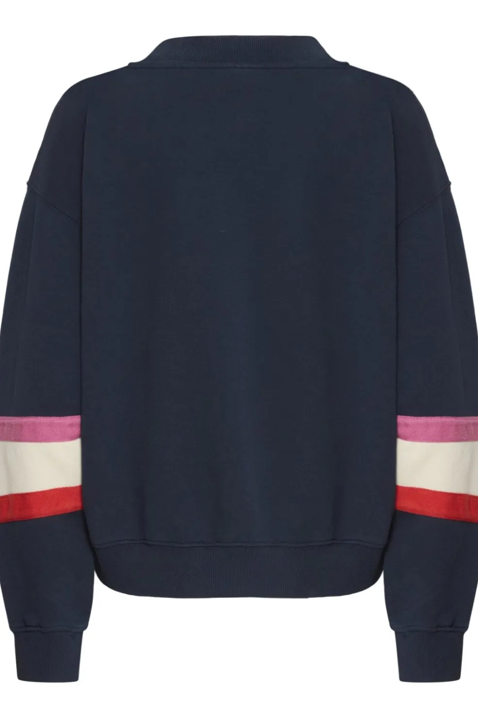 Sweatshirt fra Ball i mørkeblå med farveblokdesign i pink, rød og hvid. Den har et stort BALL-logo på brystet og en rund halsudskæring med ribkant.