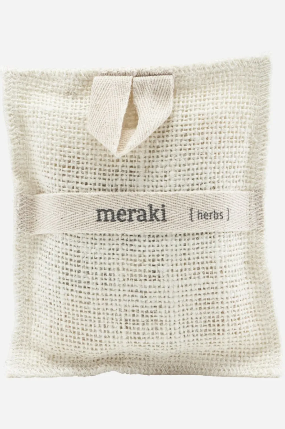En badehandske med vævet tekstur og urteduft. Den indeholder Meraki-sæbe og har en eksfolierende overflade til grundig rengøring af huden.