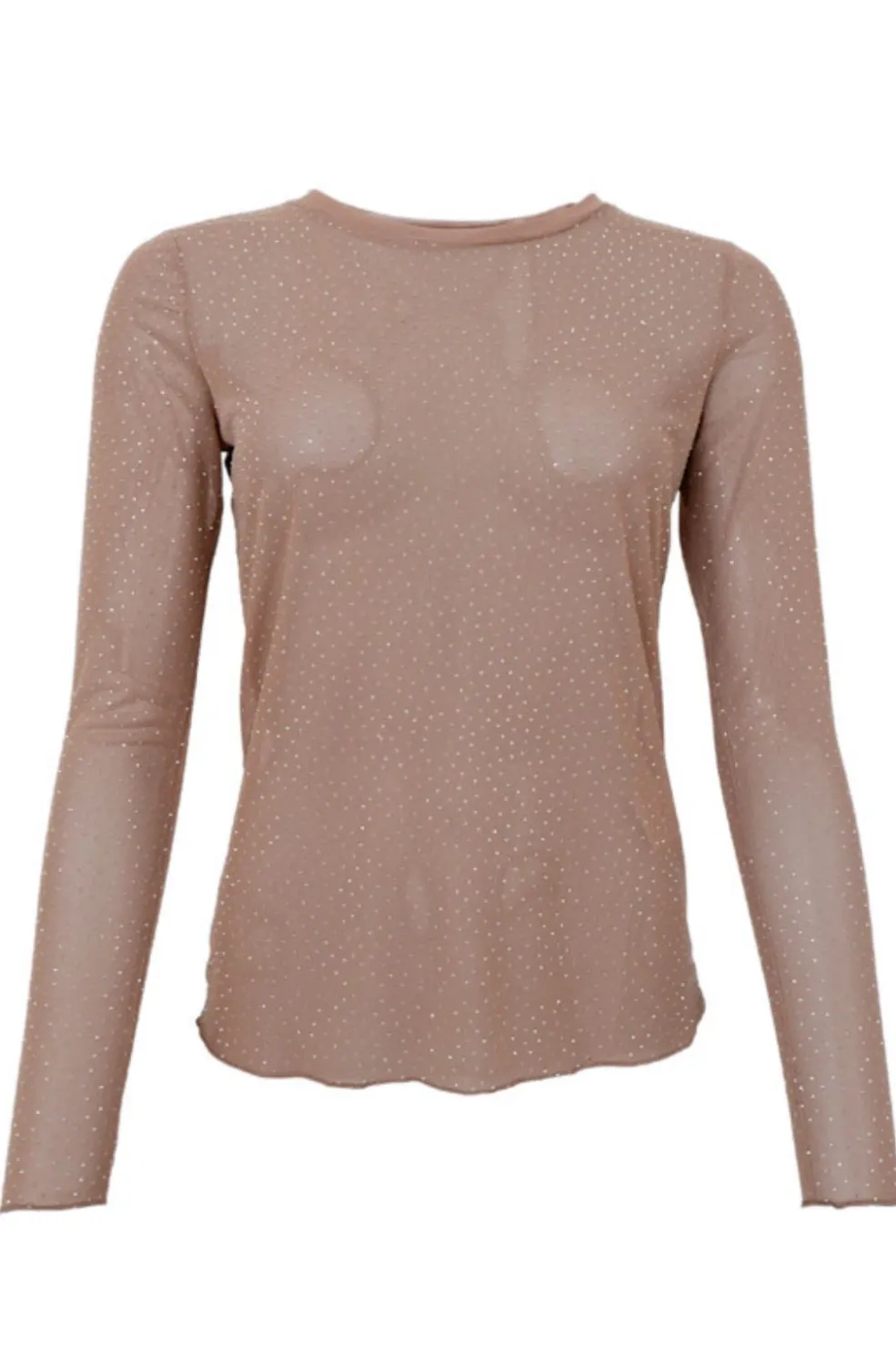Lattefarvet t-shirt fra Black Colour med pailletter og flæser. T-shirten har en tætsiddende pasform og er dekoreret med et prikket mønster over hele designet.