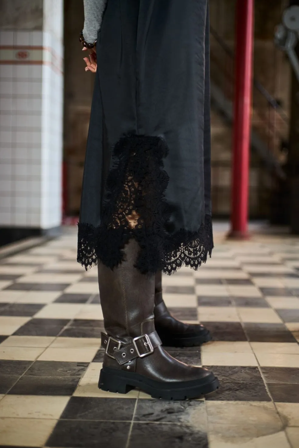 Sort kjole fra Black Colour med blonder detaljer. Kjolen har en løs pasform og går til midt på læggen. De tynde stropper og den firkantede halsudskæring giver kjolen et rent udtryk.