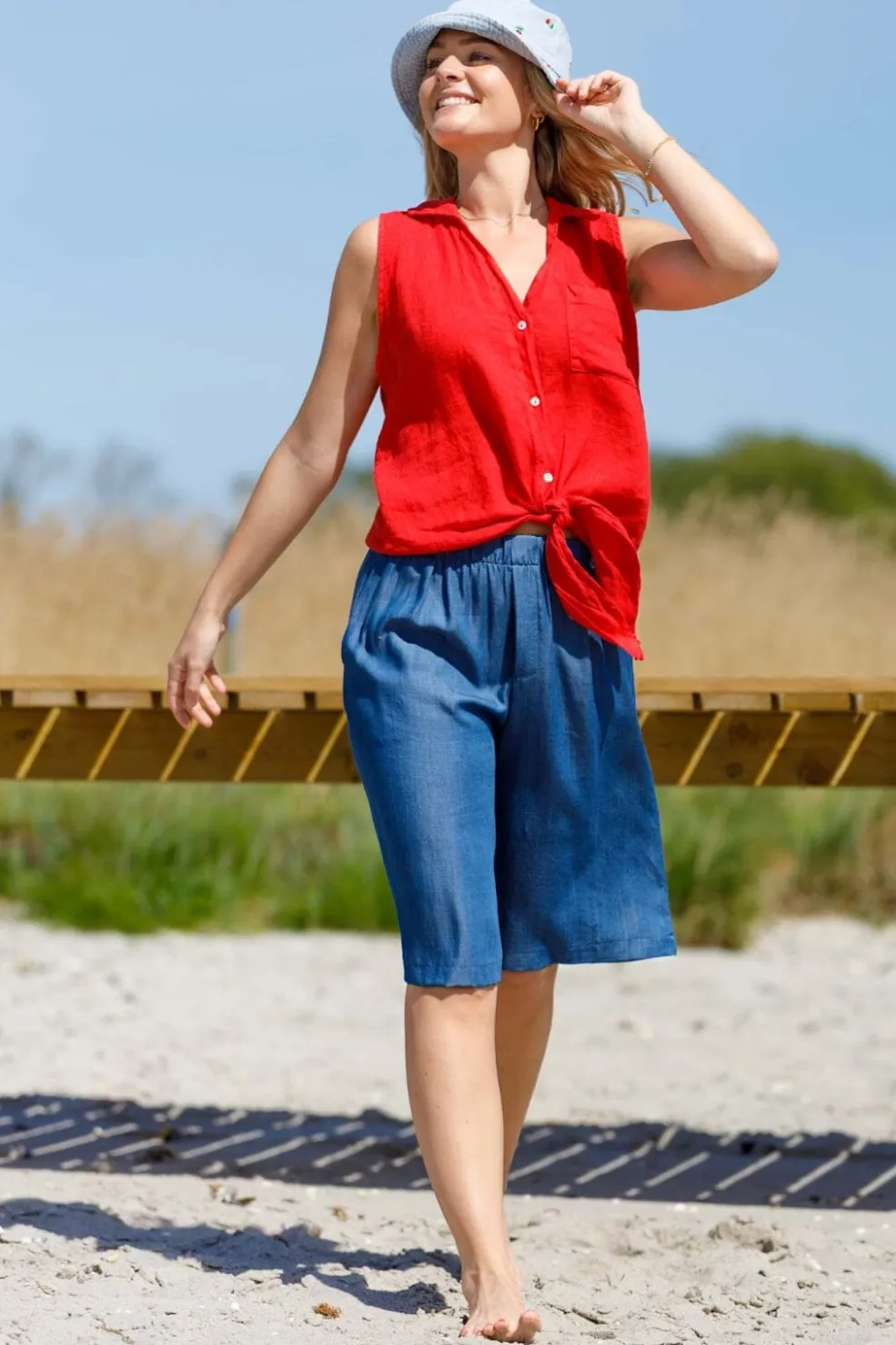 Shorts fra Black Colour i jeansblå. En løs model med knælængde, lavet af blødt Lyocell-stof med et let og luftigt udtryk.