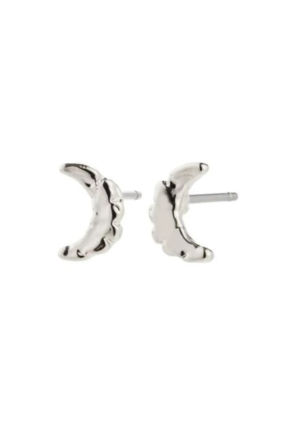 Sølvbelagte halvmåneørestikker fra Pilgrim med et enkelt design. Ørestikkerne er lavet af genbrugsmaterialer og har en klar, buet form.