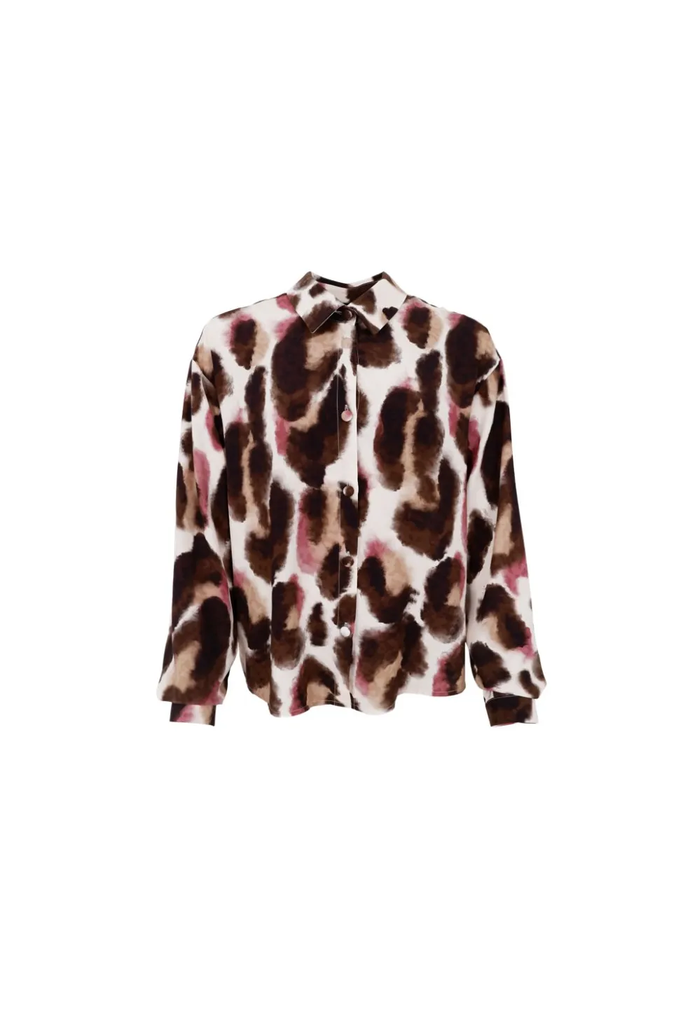 Skjorte fra Black Colour i 100% viskose med et dyremønster i brune og lyserøde nuancer. Skjorten har en løs pasform og lange ærmer.