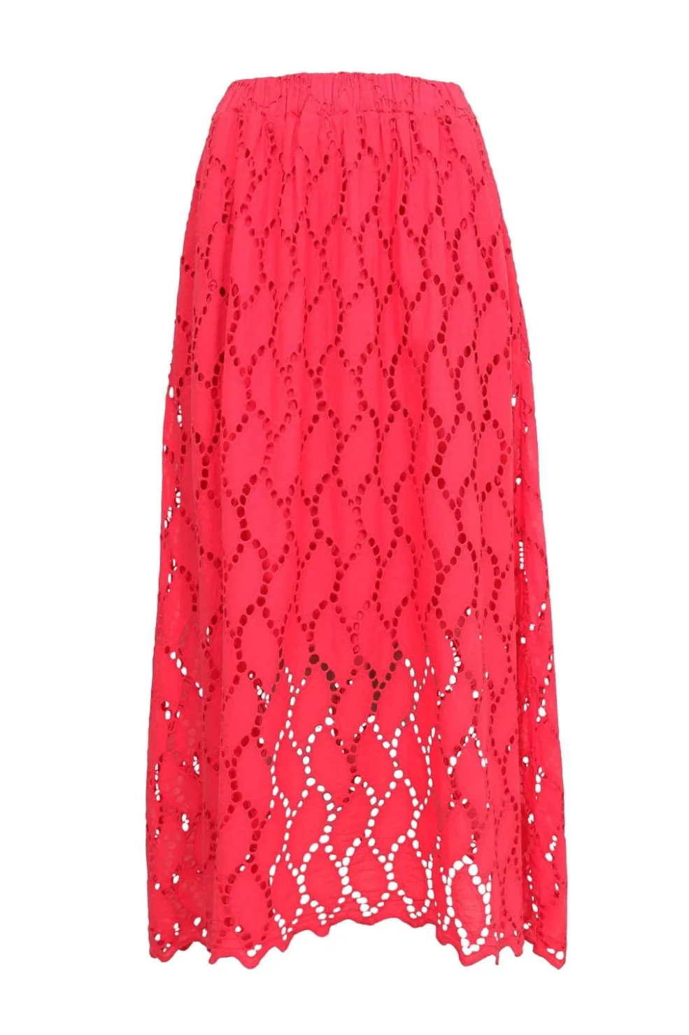 Rød nederdel fra Black Colour med blonder og udskæringer. Den lange model har et let og luftigt design med dekorative åbninger i stoffet.