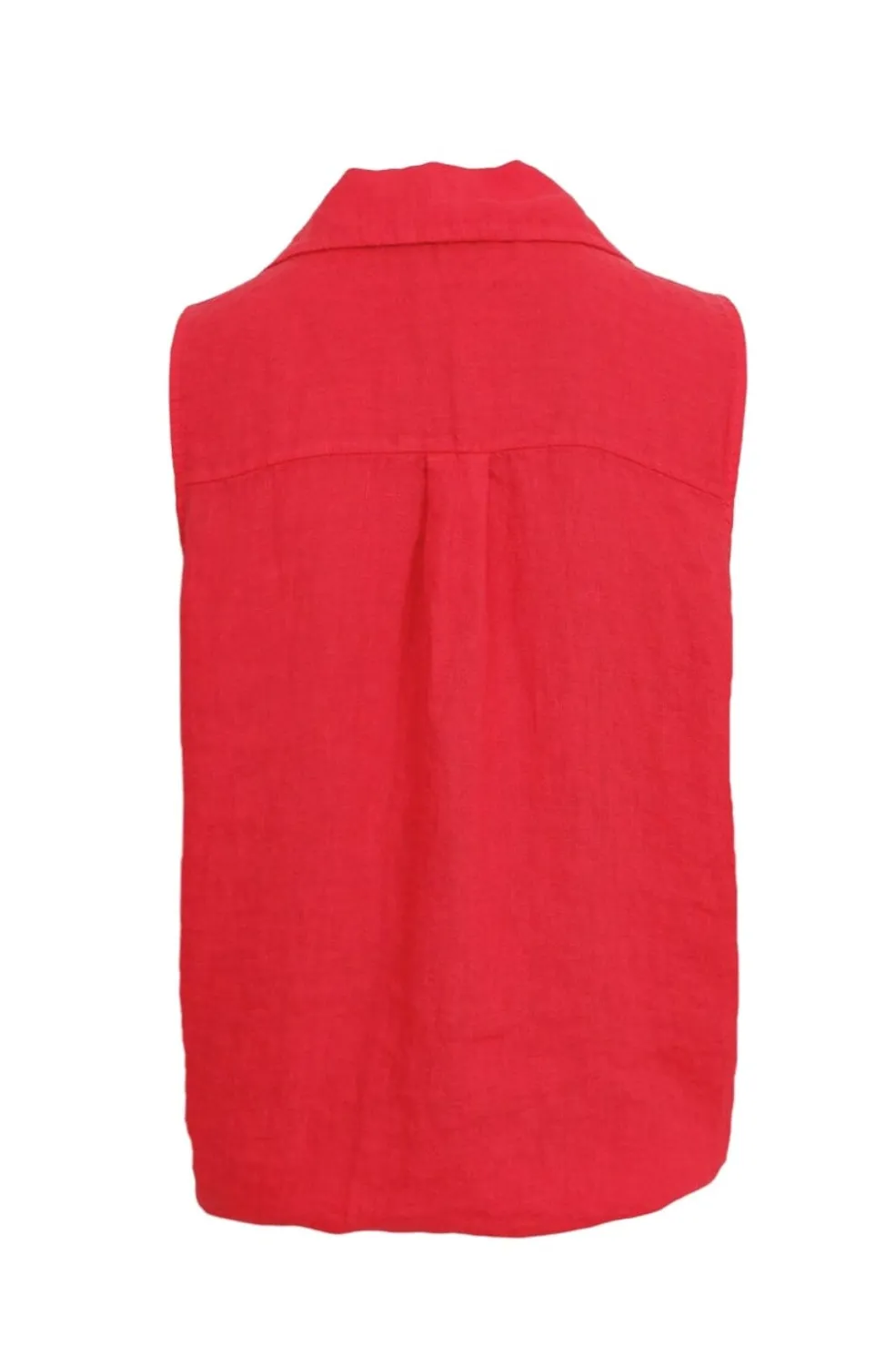 Rød ærmeløs skjorte fra Black Colour med knyttedetalje forneden. Skjorten har en klassisk krave og en lille brystlomme på venstre side.