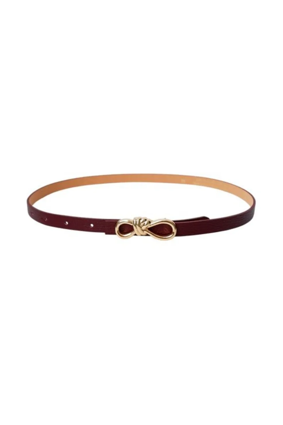 Bælte fra Black Colour i vinrød. Dette bælte er lavet af læder og har en klassisk spænde-lukning med en sløjfedetalje.