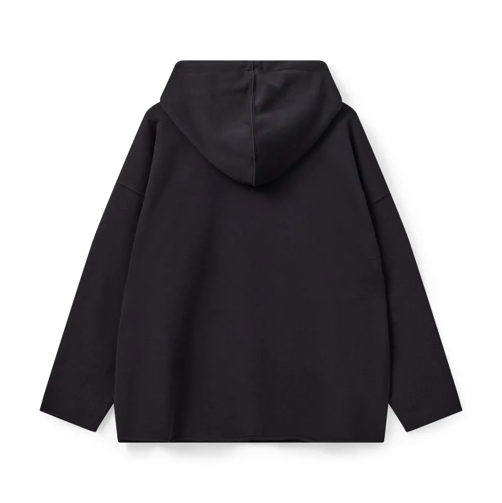 Sort hættetrøje fra H2O Fagerholt med kængurulomme og rullede kanter. Den oversized pasform og det tone-i-tone logo giver hættetrøjen et rent og enkelt udtryk.
