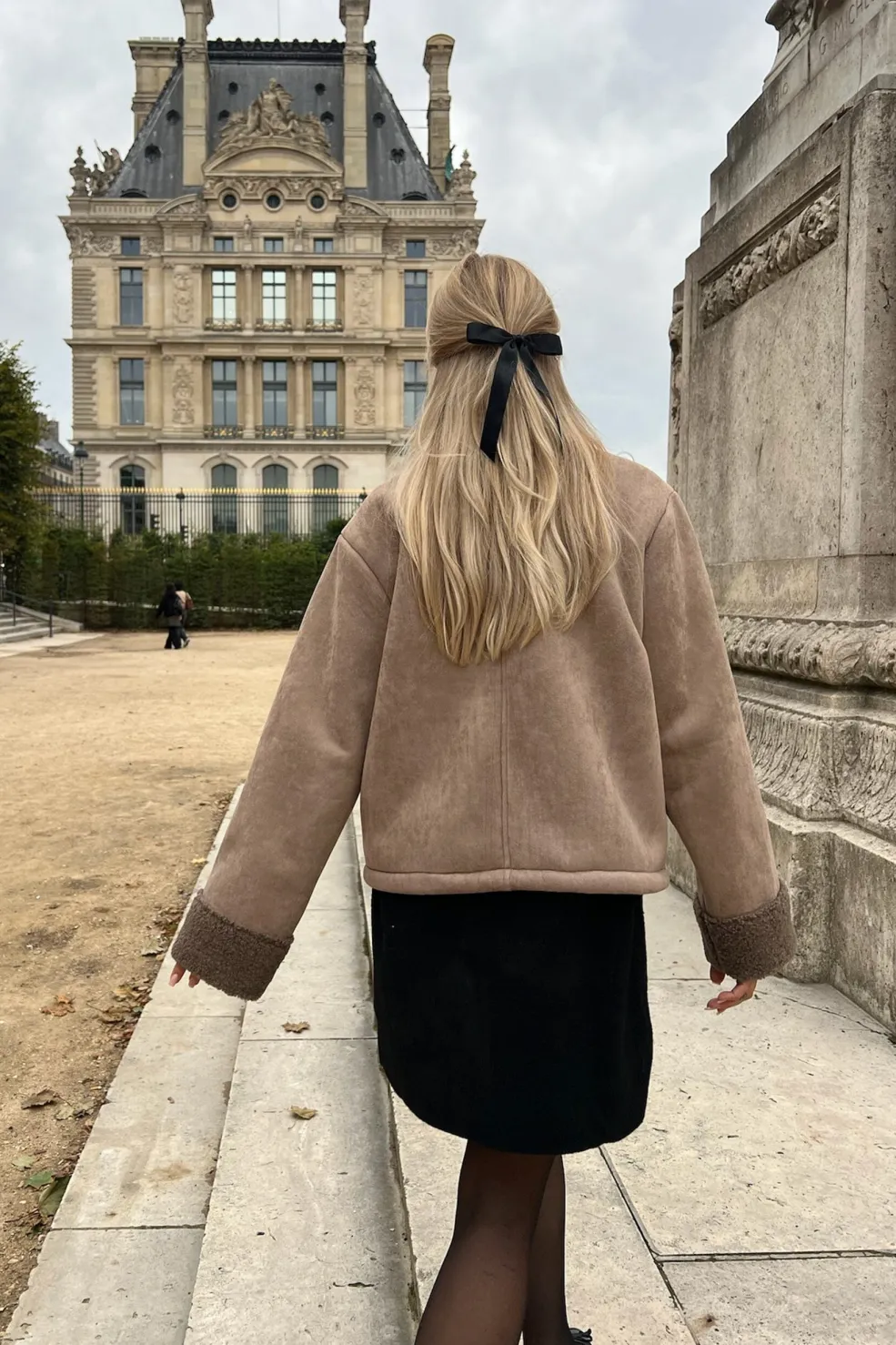 Lysebrun teddyjakke fra BYIC med skjortekrave og kontrasterende detaljer. Jakken har en regular fit og store lommer foran. Knapper hele vejen ned gør den nem at tage af og på.