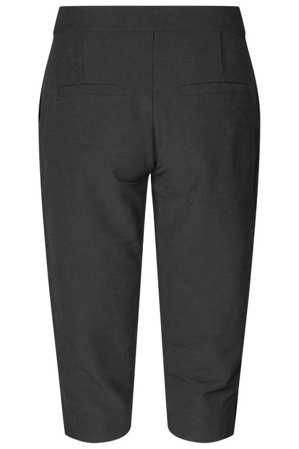 Sorte capribukser fra MbyM i kalvelængde med en normal pasform. Bukserne har et enkelt design med elastisk lukning og er fremstillet i en blød materialekombination.