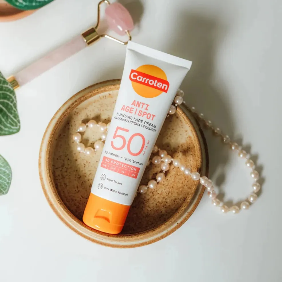 Ansigtssolcreme med høj SPF 50+ beskyttelse og 4D-teknologi mod UVB-, UVA-, VL- og IRA-stråler. Den vandafvisende formel beskytter huden mod solskader og pigmentpletter.