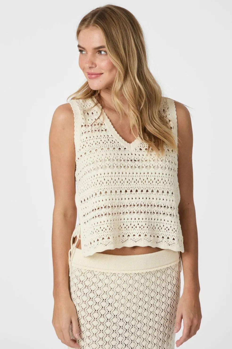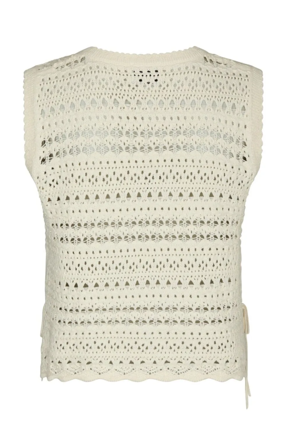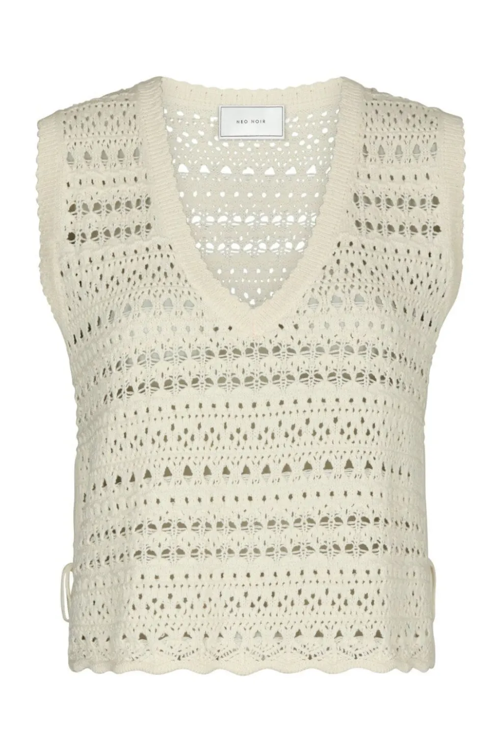 Hæklet top fra Neo Noir i creme. Toppen har et gennemgående hæklet mønster med åbne detaljer og en V-halsudskæring.