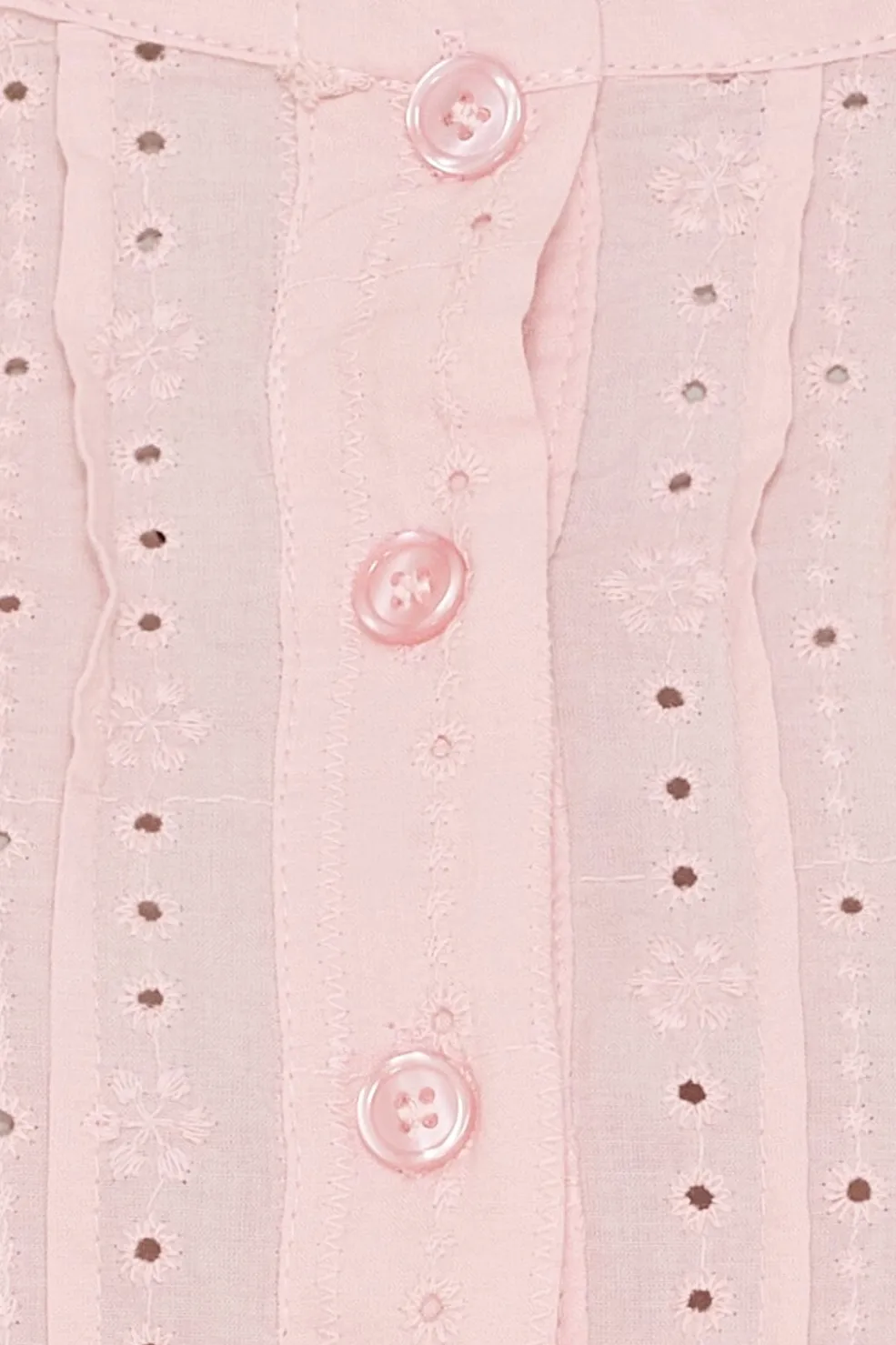 Lyserød bluse fra Marta Du Chateau med struktureret blomstermønster og broderi. Blusen har korte pufærmer, rund halsudskæring og knaplukning foran med tre knapper.