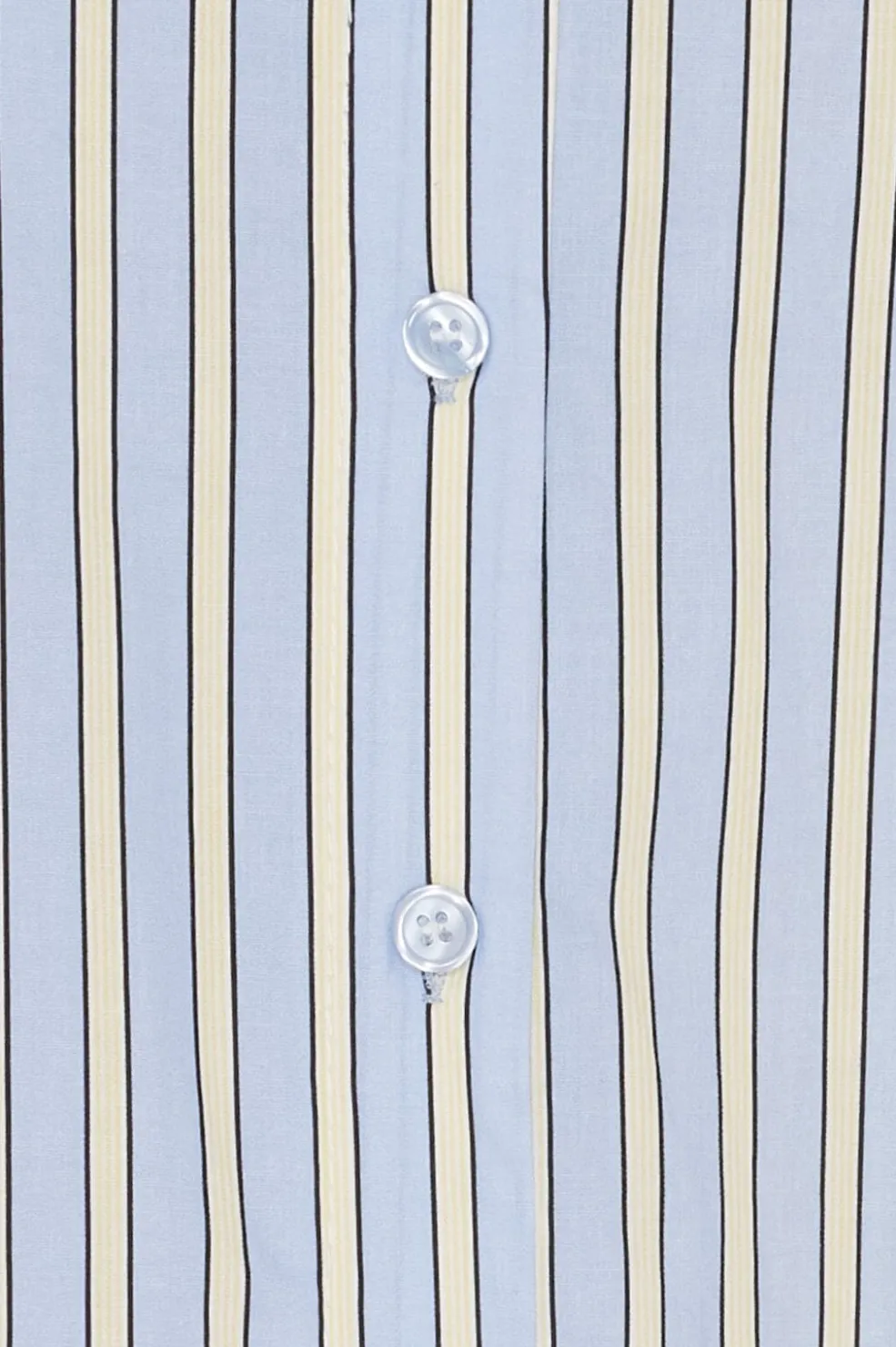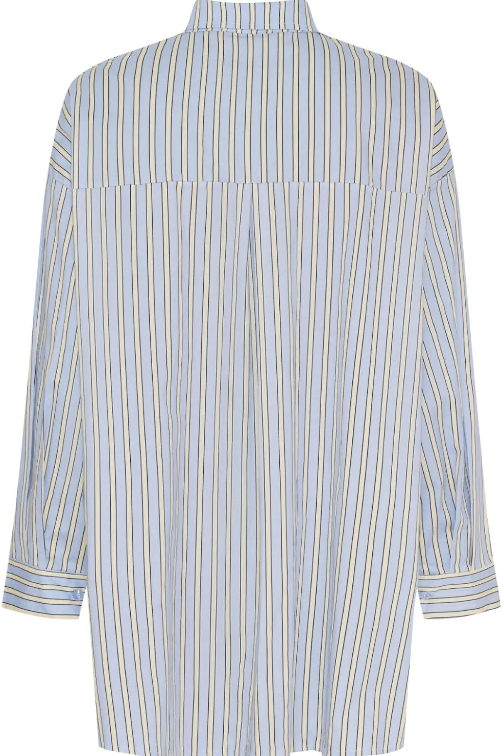 Stribet skjorte fra Marta Du Chateau med lyseblå og cremefarvede lodrette striber. Skjorten har en længere bagkant, skjortekrave og knapper hele vejen ned foran.