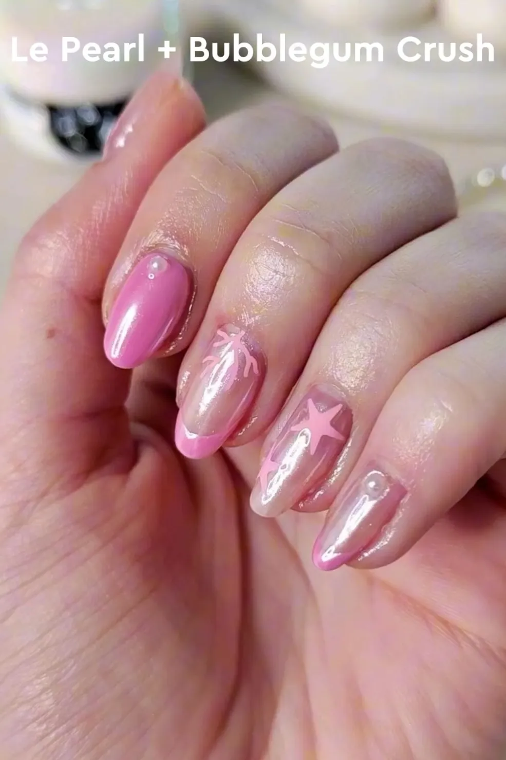 Start med at påføre den hvide Milkshake-gellak som base. Hærd lakken i UV-lampen i 15 sekunder. Påfør derefter krompulveret med den medfølgende applikator. Dup pulveret forsigtigt på den hærdede base, indtil perlemorseffekten fremstår. Afslut med 1-2 lag topcoat og hærd igen for at beskytte finishen.