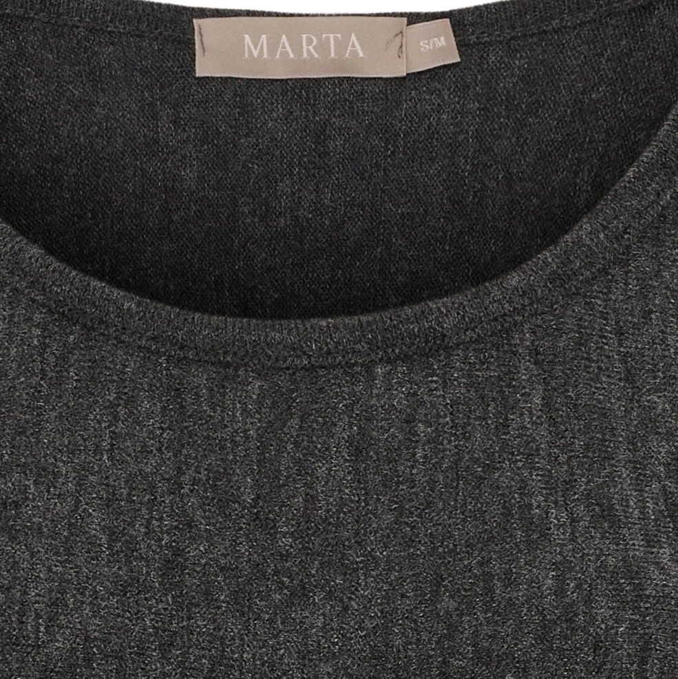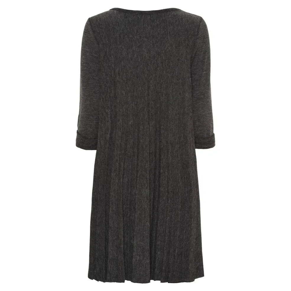 Mørkegrå kjole fra Marta Du Chateau med plisseret nederdel. Kjolen har en løs pasform og knælængde, hvilket gør den velegnet til både hjemmebrug og afslappede anledninger.