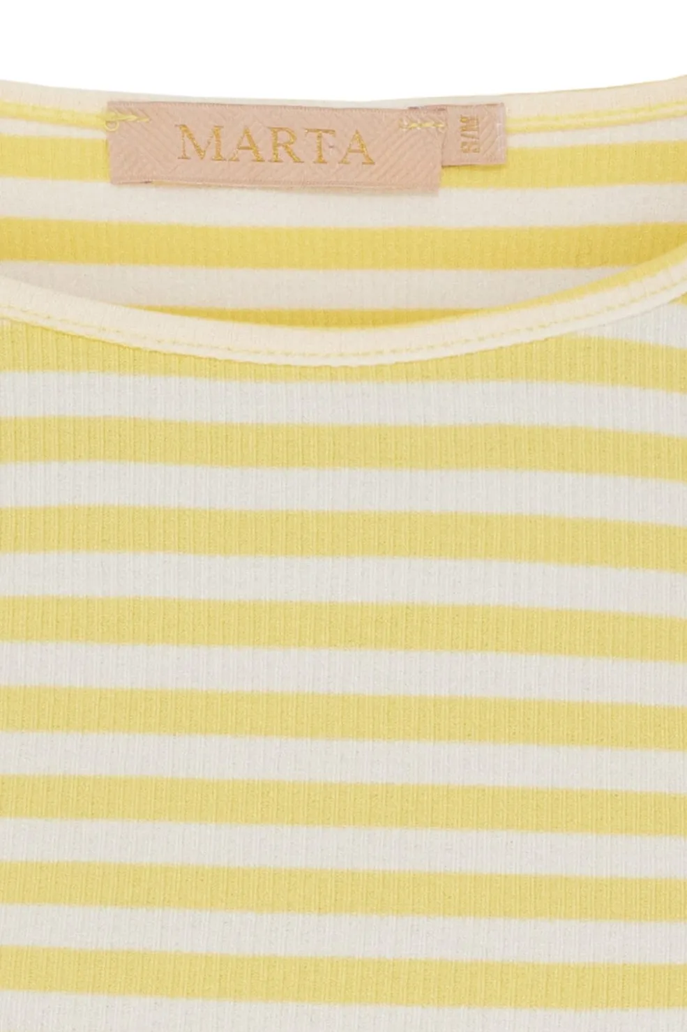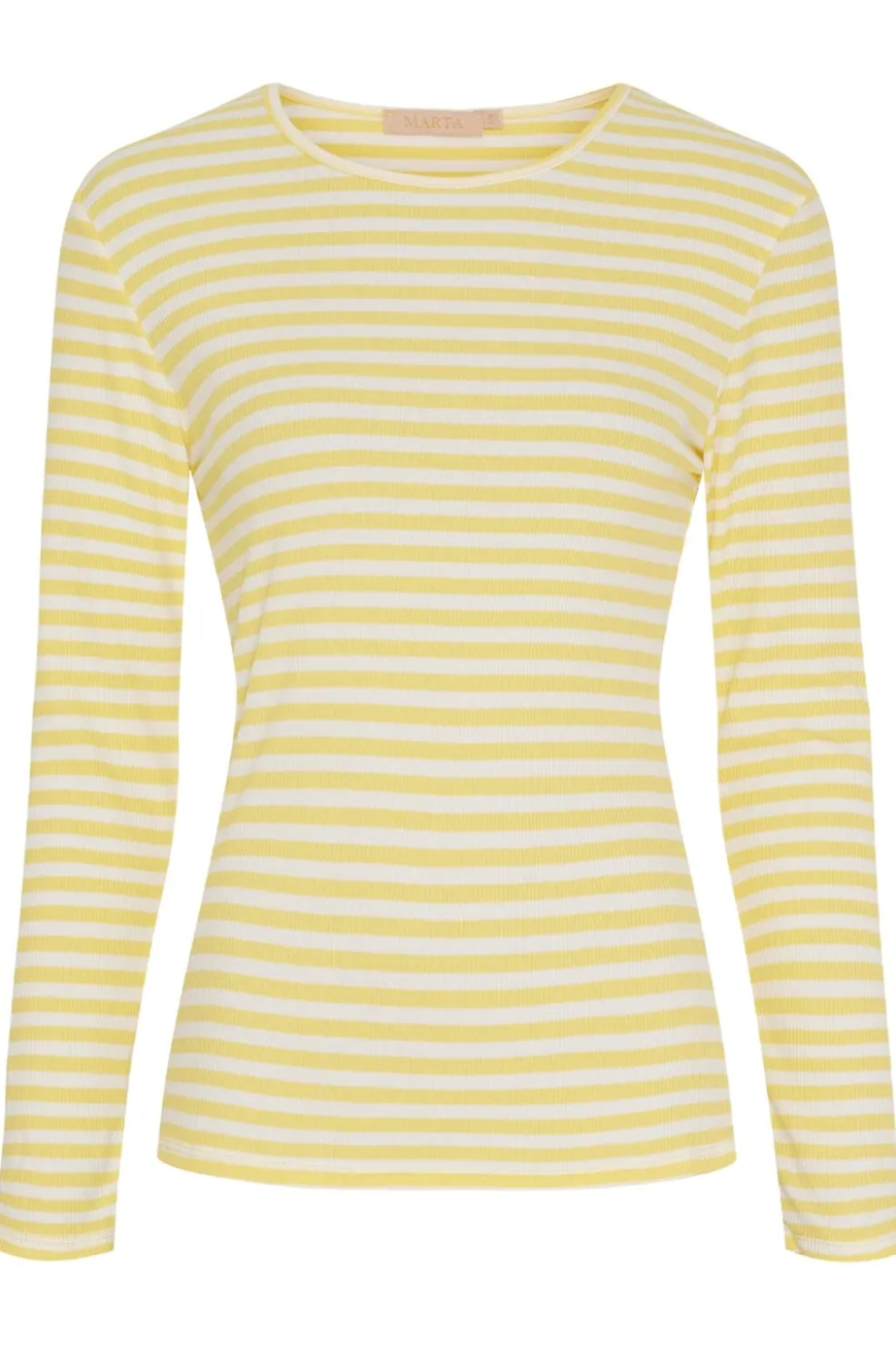 Langærmet t-shirt fra Marta Du Chateau med gule og hvide striber. T-shirten har en regular fit og rund halsudskæring, som giver god bevægelsesfrihed.