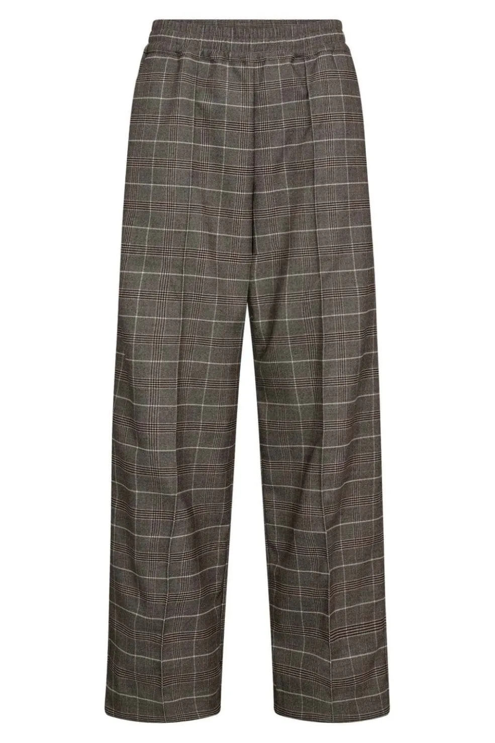Bukser fra Co´Couture i en brun tern med grå nuancer. Bukserne har en løs pasform og en høj talje med elastik.