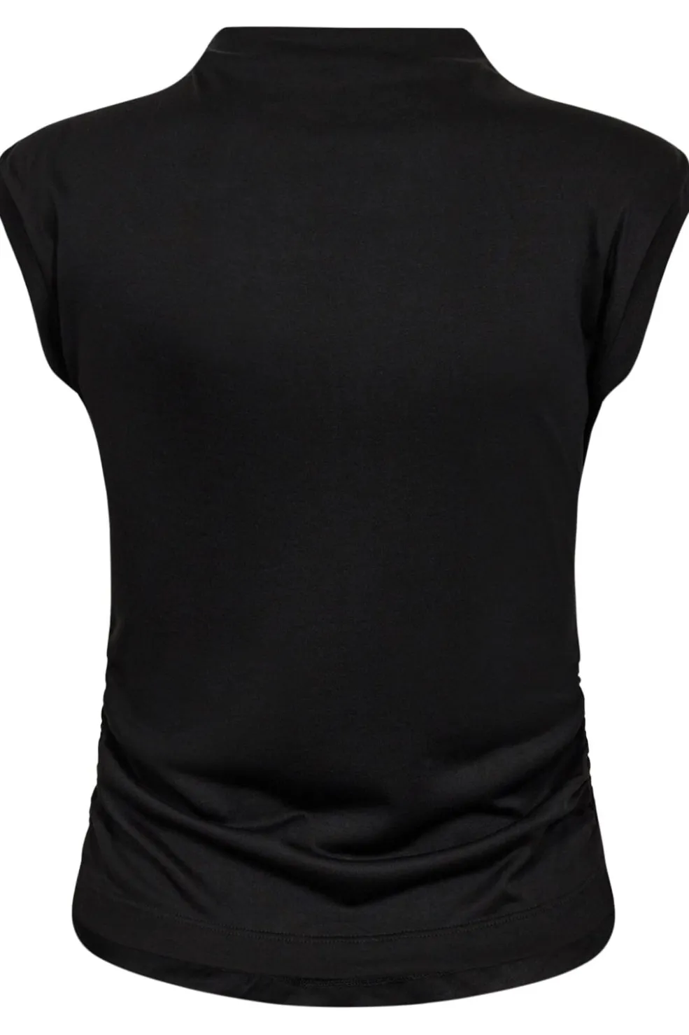 Sort t-shirt fra Co´Couture med høj halsudskæring og ærmeløst design. Rynkedetaljer i siderne giver t-shirten et særpræg og en god pasform.