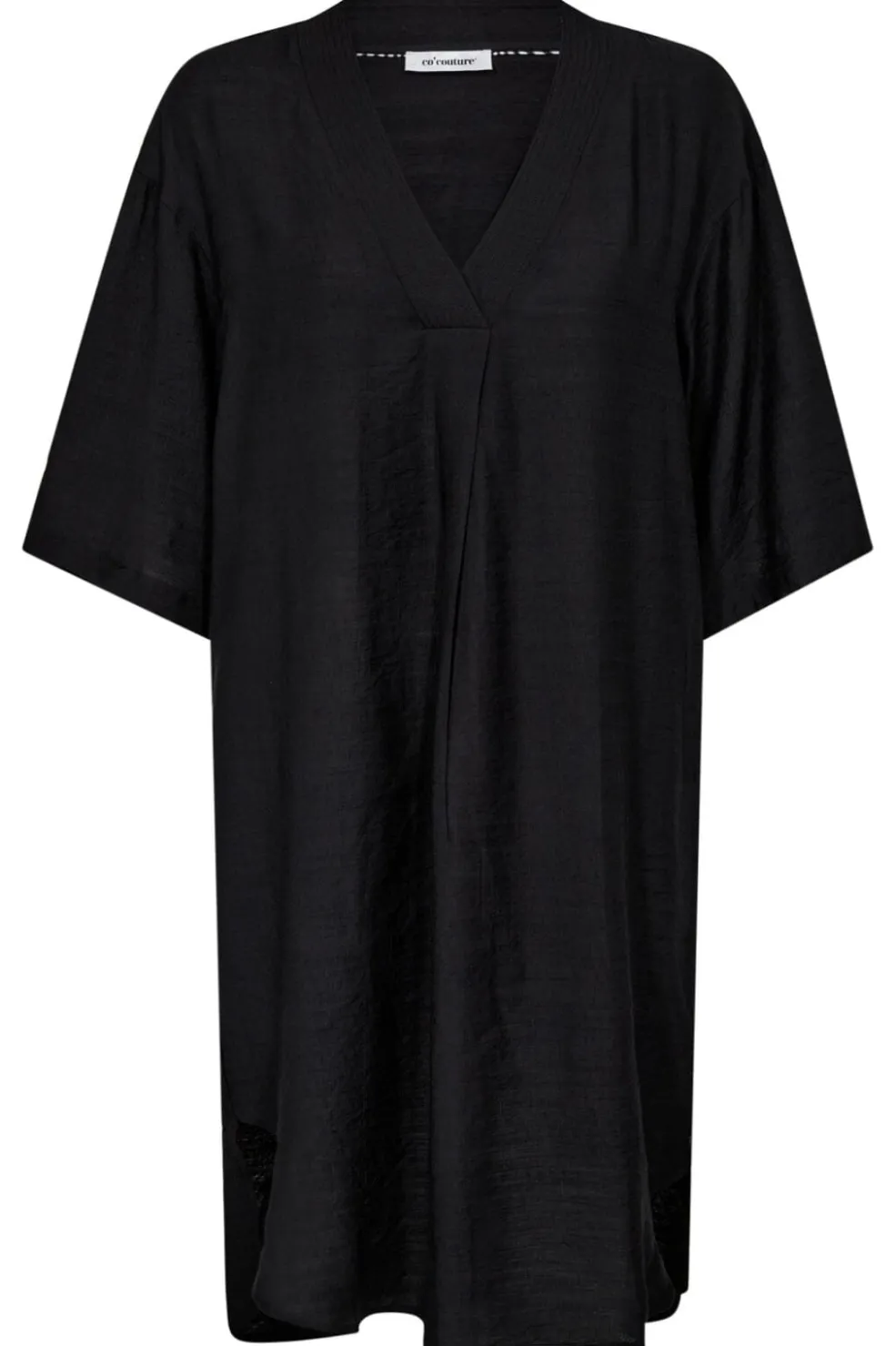 Sort tunikakjole fra Co´Couture med plisserede detaljer. Kjolen har en V-udskæring og korte ærmer. Den løse pasform giver bevægelsesfrihed og god komfort.