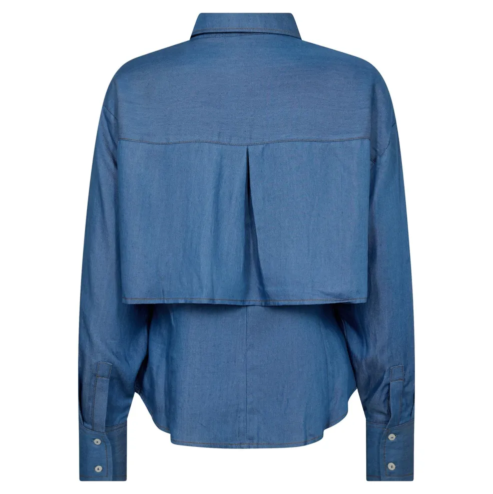 Denimskjorte fra Co’Couture i denimblå. Skjorten har et dobbelt lag denimstof og en klassisk skjortekrave med knaplukning foran. Den regulære pasform giver god bevægelsesfrihed.