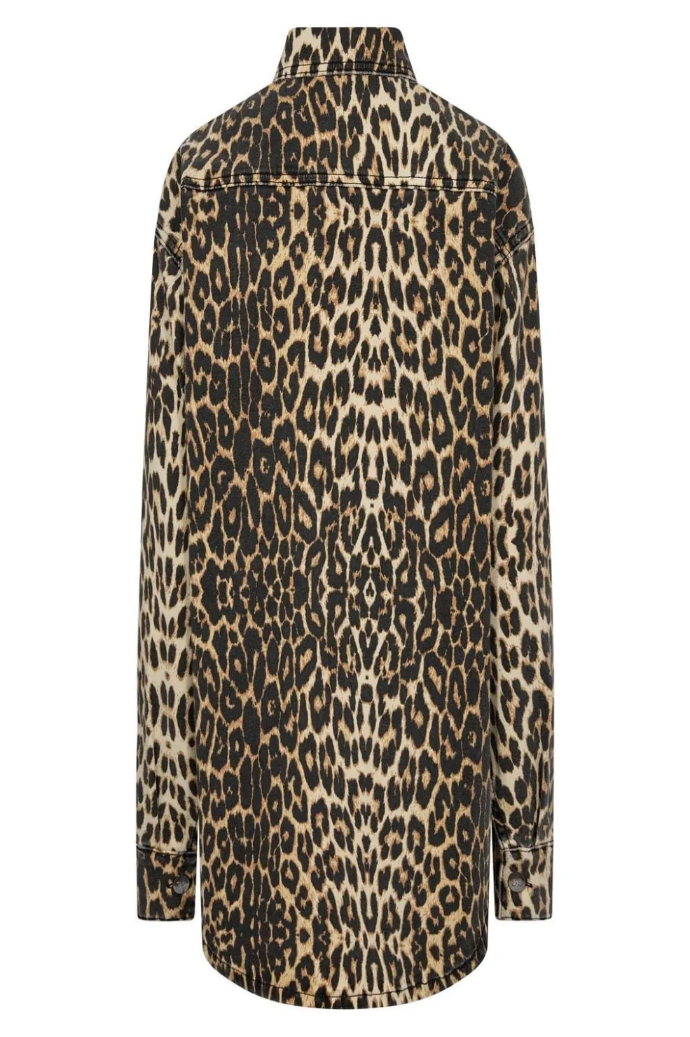 Denimskjorte fra Co´couture med leopardmønster i beige og sorte nuancer. Skjorten har en løs pasform med klassisk skjortekrave og brystlommer.