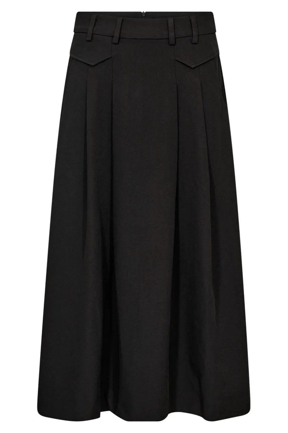 Sort nederdel fra Co´Couture, lavet af en polyester-spandex-blanding. Nederdelen har plisseringer foran og lommer med klapper.