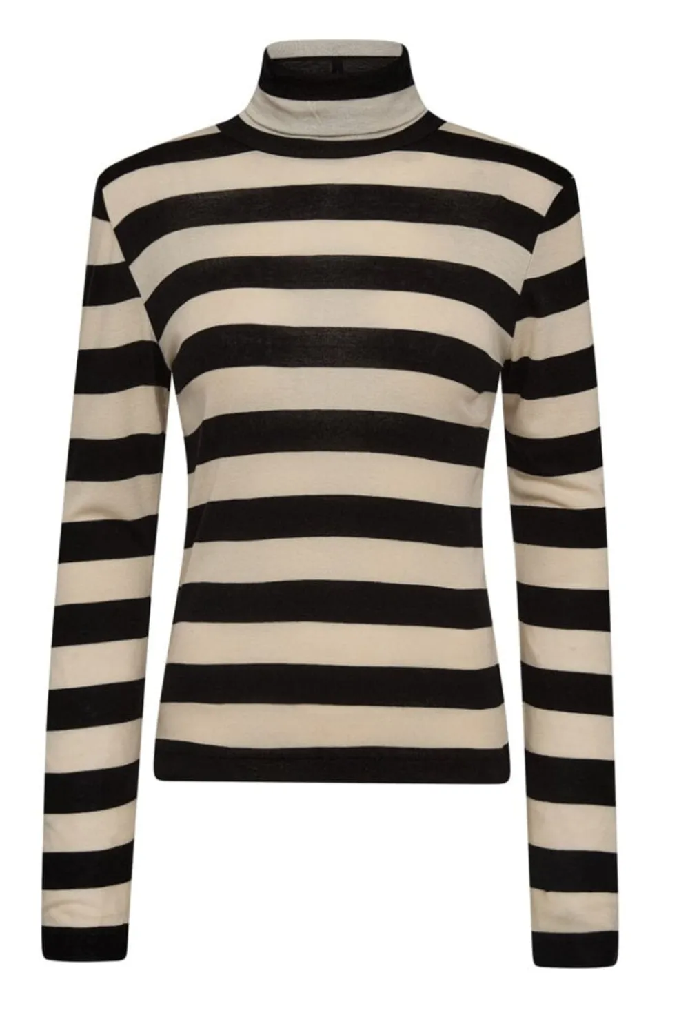 Langærmet bluse med rullekrave fra Co´Couture, lavet af lyocell. Blusen har vandrette striber i sort og benfarvet samt en tætsiddende pasform.
