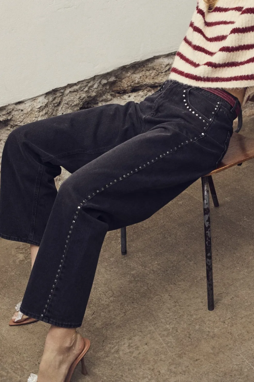 Disse bukser kombinerer stil og komfort med deres normale pasform og unikke nitte-detaljer.