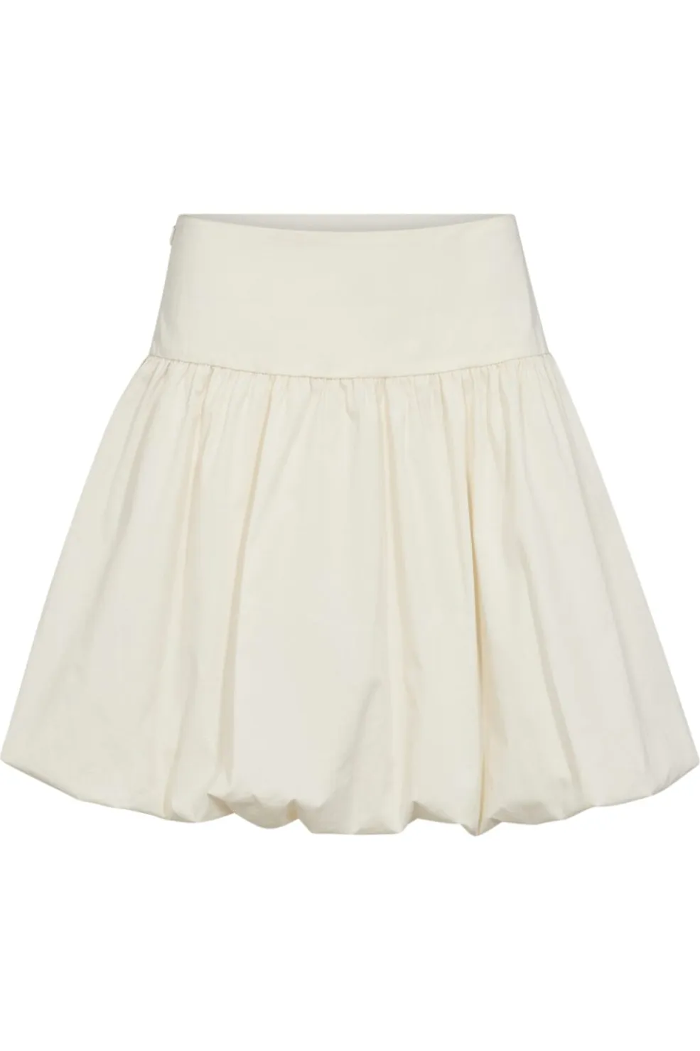 Mini nederdel fra Co´Couture i bonefarve med ballonform. Den har elastisk talje og er lavet af en blanding af bomuld og polyamid.