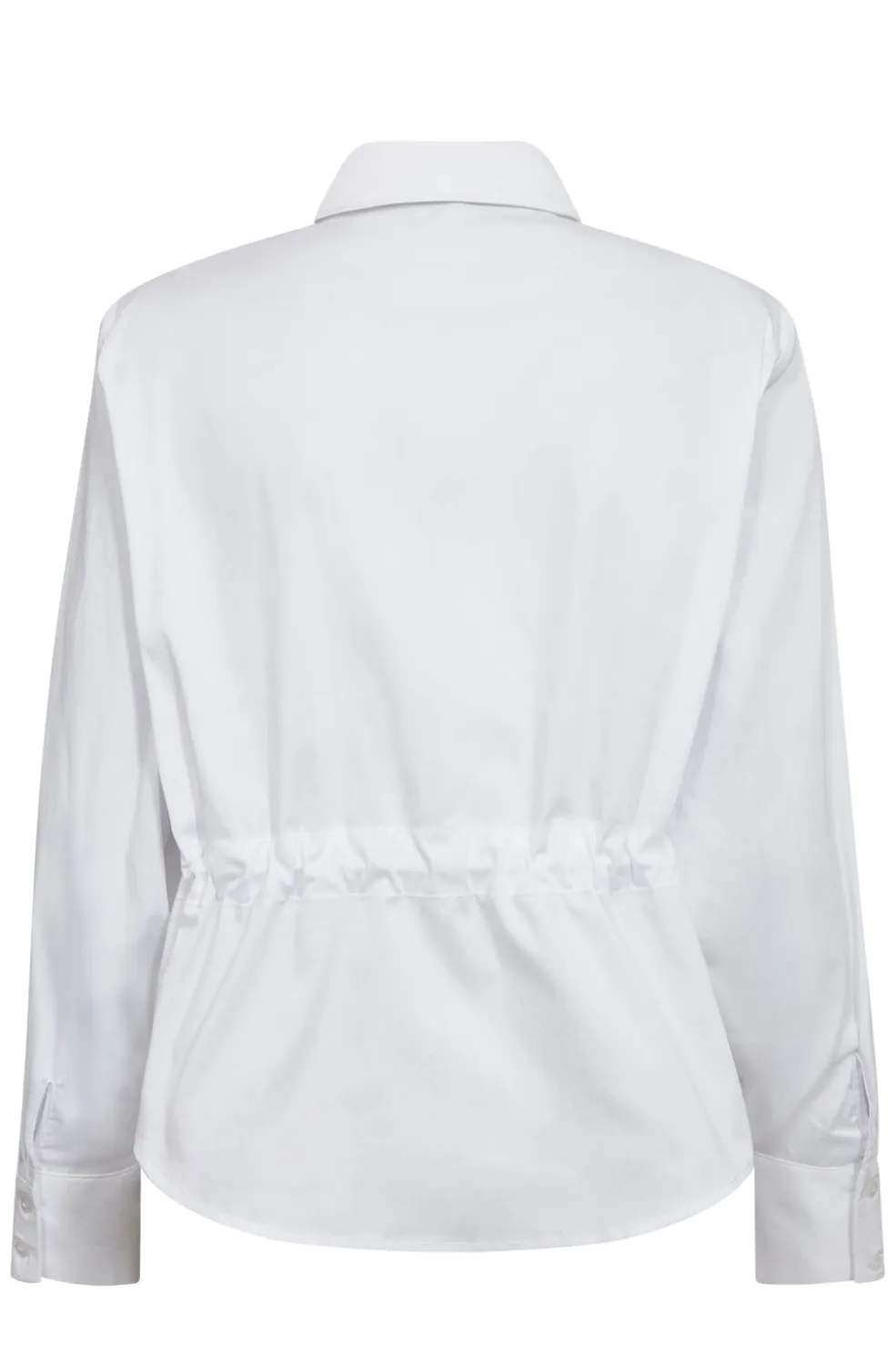 Hvid skjorte fra Co’Couture med struktureret krave og knaplukning. Skjorten har bindebånd i taljen, som kan justeres efter ønske.