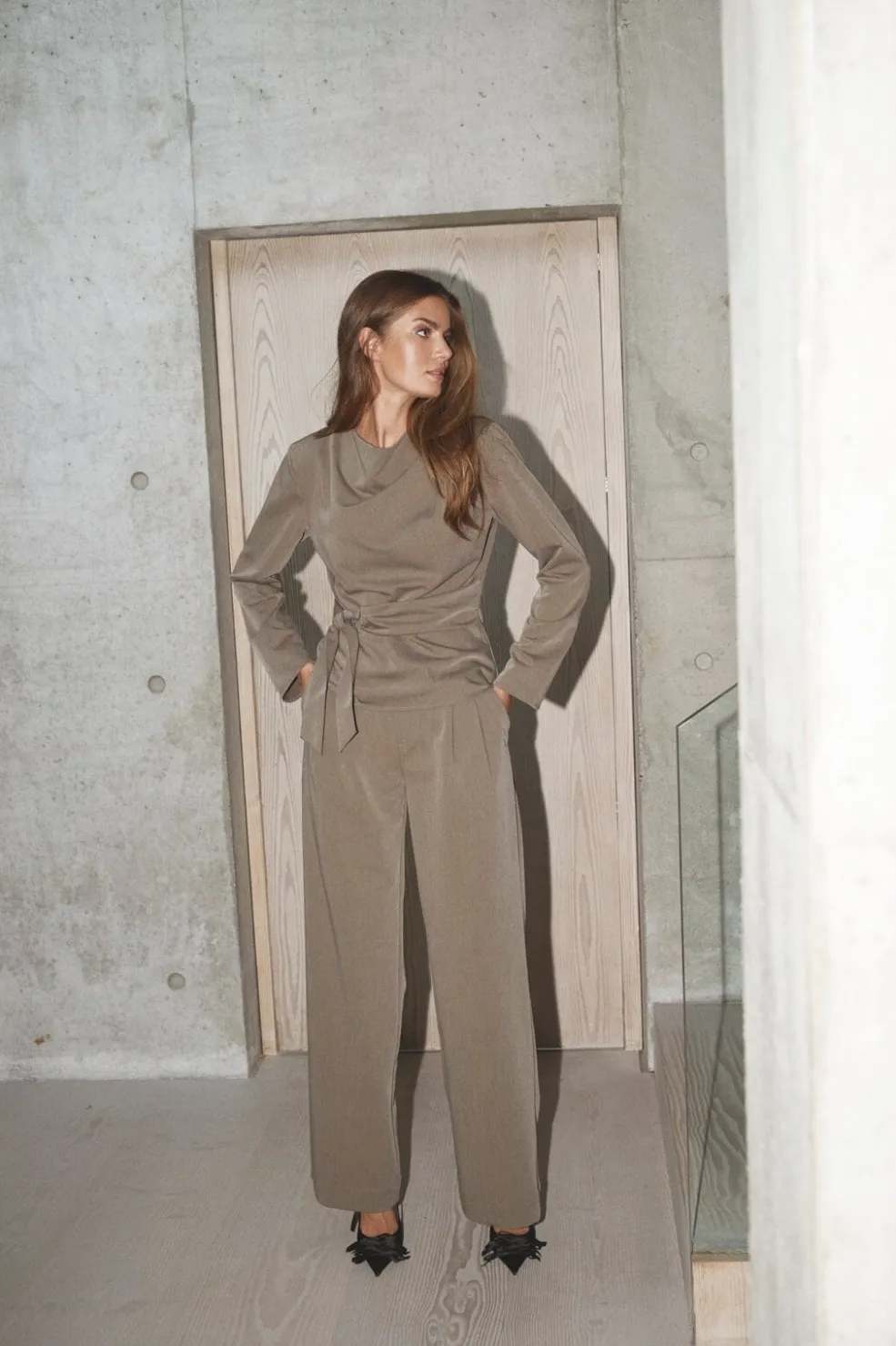 Brune bukser fra Co´Couture med bred benvidde. Bukserne passer til både fest og hverdag i kraft af deres alsidige design.