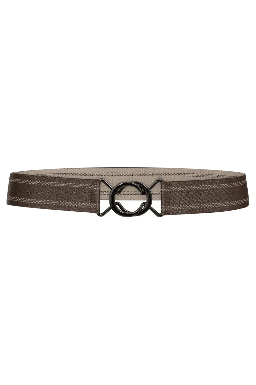 Elastisk bælte fra Co´Couture i brun farve. Bæltet har et rundt spænde og synlige syninger langs hele længden.