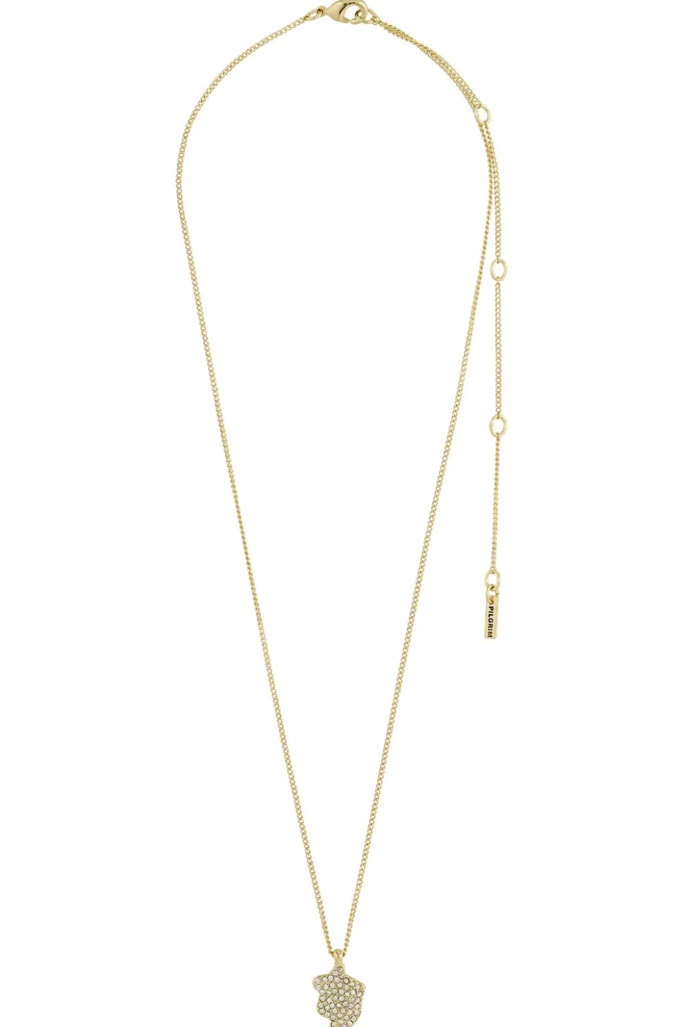 Guldbelagt halskæde fra Pilgrim med funklende Preciosa-krystaller. Kæden er fremstillet af genanvendte materialer og har et skinnende vedhæng med krystaldetaljer.