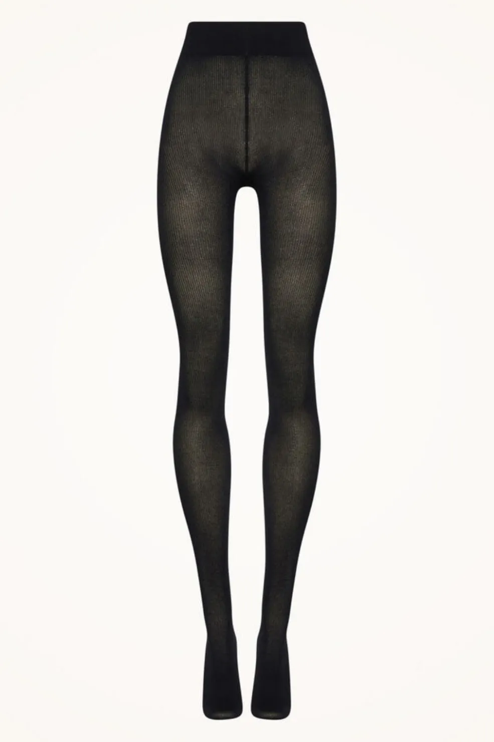 Sorte strømpebukser fra Wolford med ribbet struktur. Strømpebukserne har en blød bomuldsblanding og en tydelig ribbet overflade, der giver et struktureret udtryk.