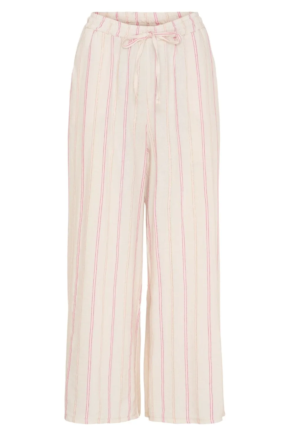 Stribede bukser fra Marta Du Chateau i hvid og lyserød. Bukserne har et bredt ben og går til anklen med en afslappet regular fit.